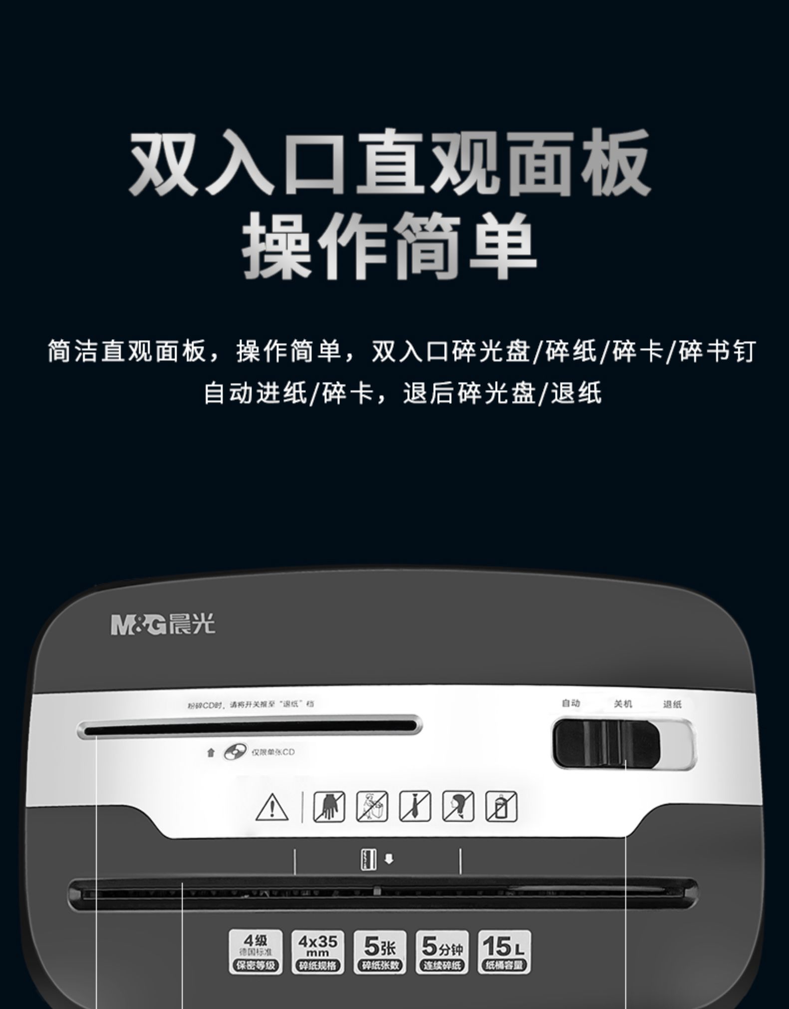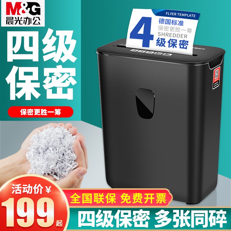 商品名称:晨光碎纸机办公自动迷你商用大功率纸张5级保密电动办公室碎卡碎光盘文件粉碎机家用
