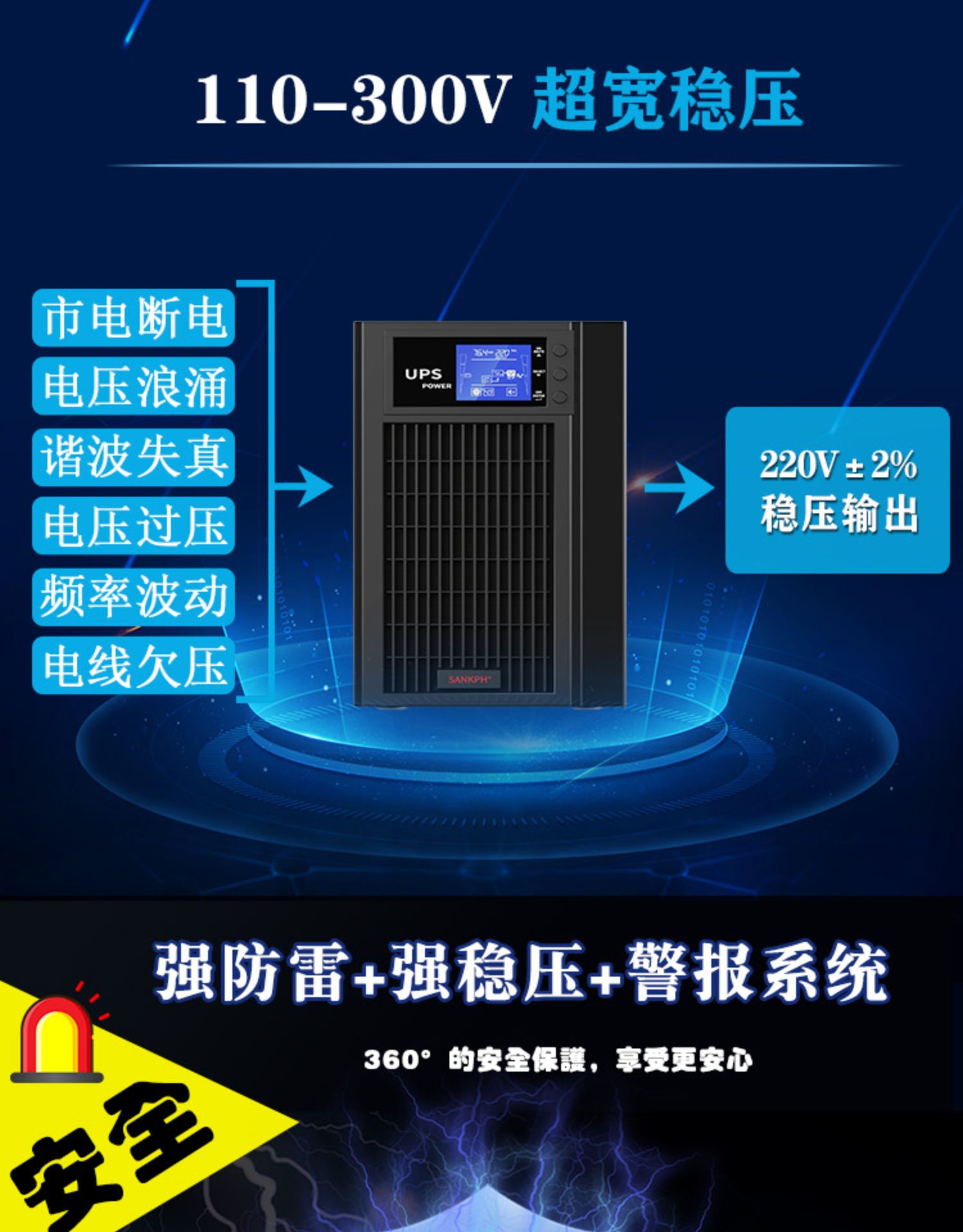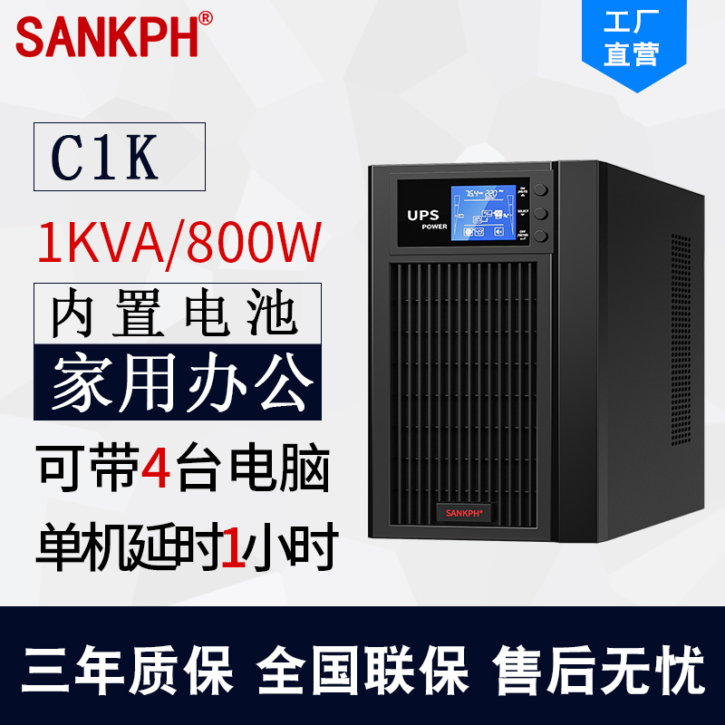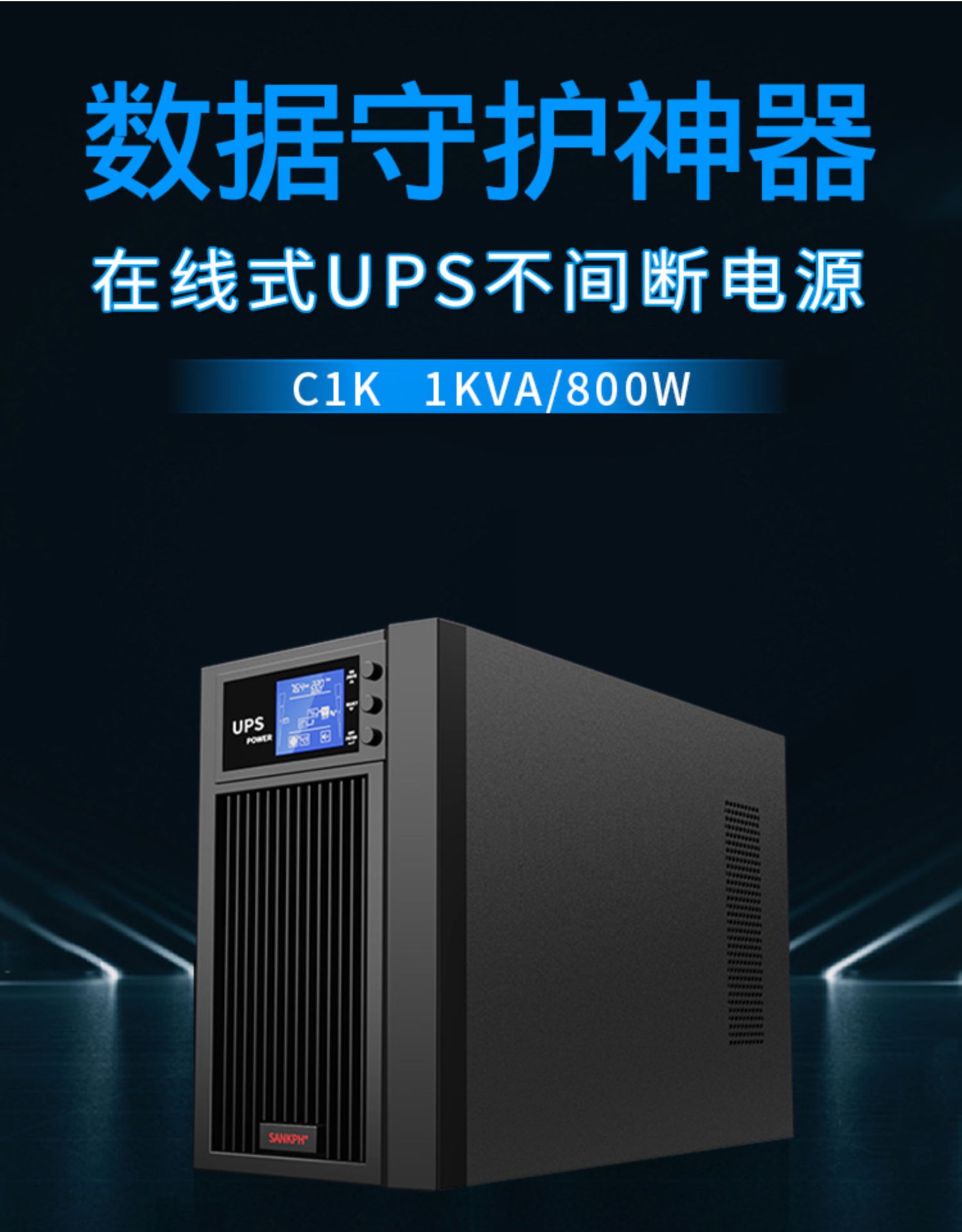 山埔UPS不间断电源在线式1KVA800W电脑服务器机应急备用防停电C1K