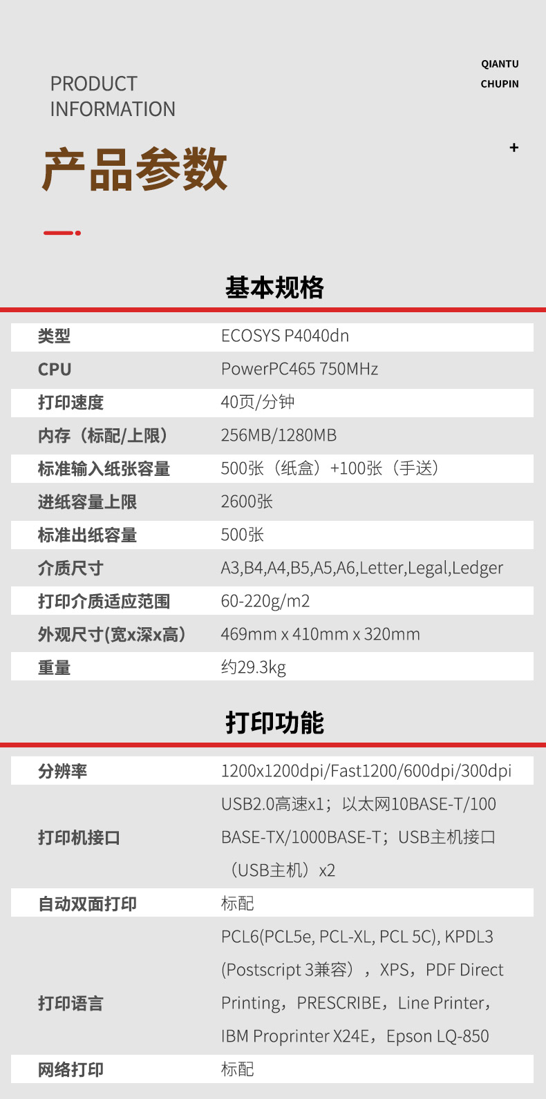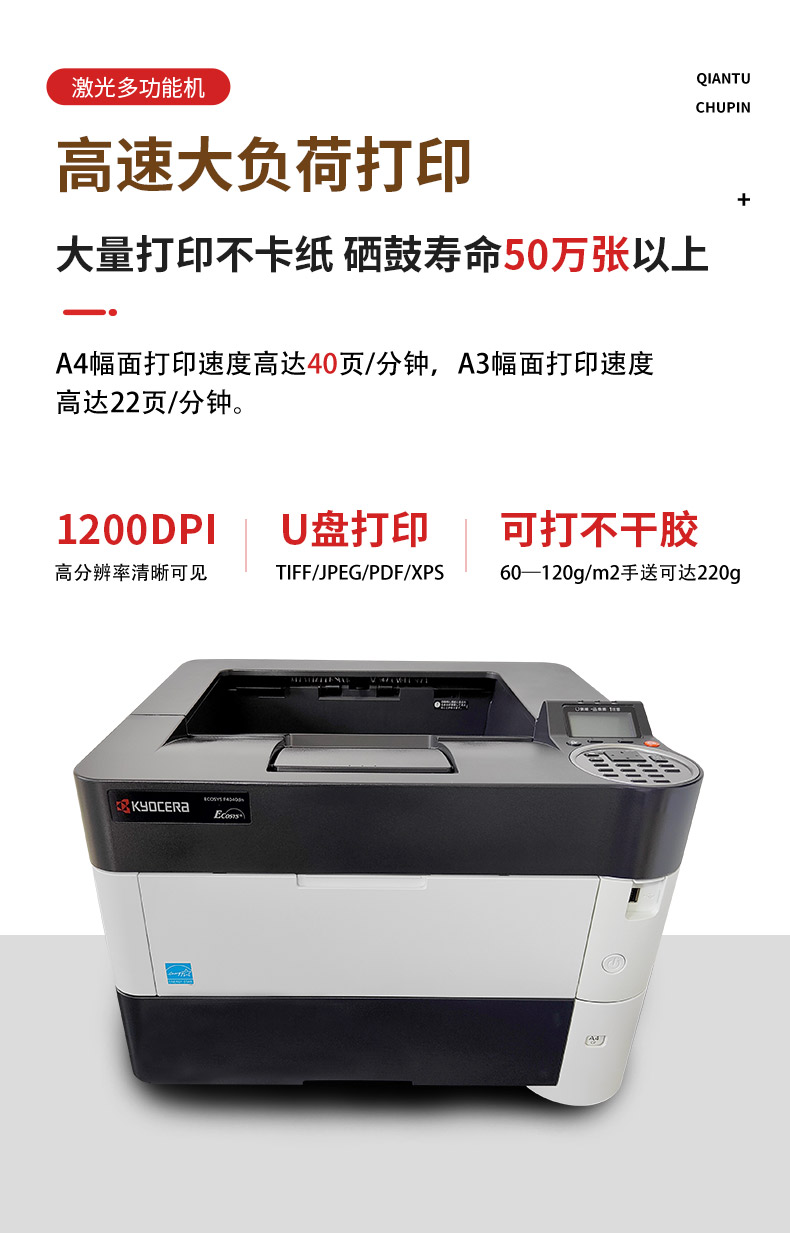 商品名称:京瓷a3黑白激光打印机高速自动双面打印商用办公商务A4不干胶4040