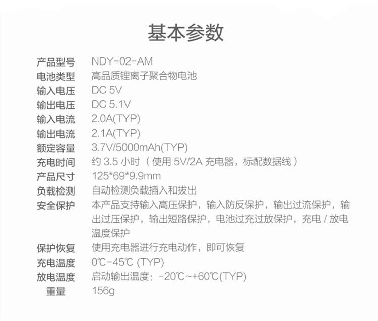 商品名称:小米充电宝5000毫安超薄移动电源