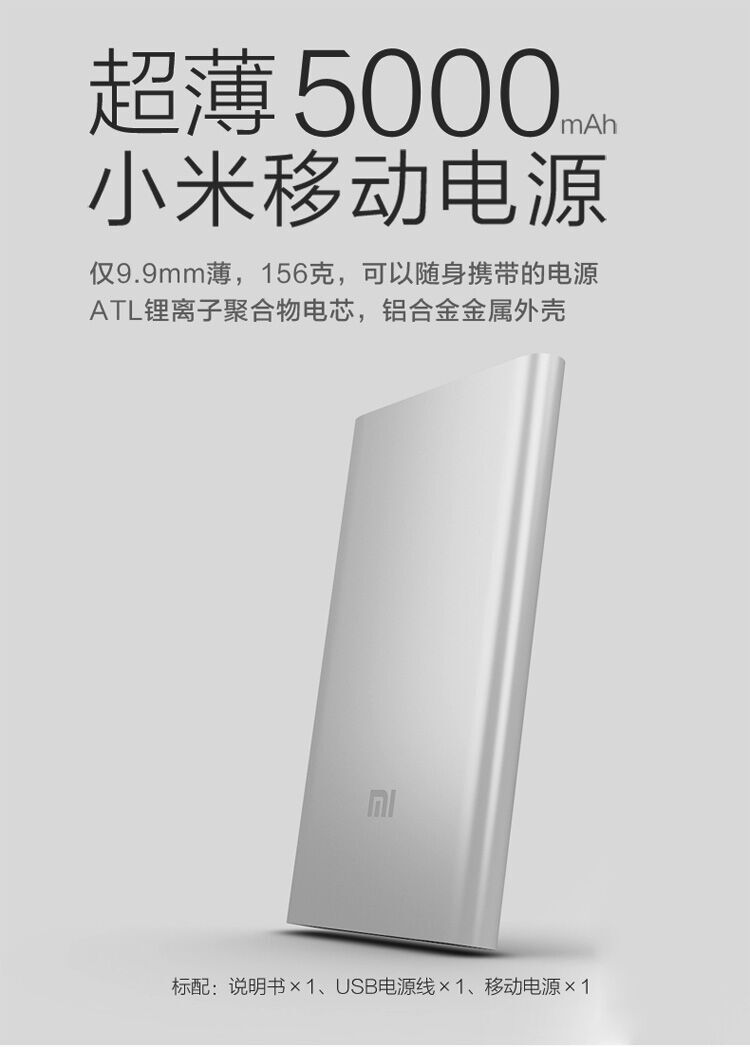 小米充电宝5000毫安超薄移动电源
