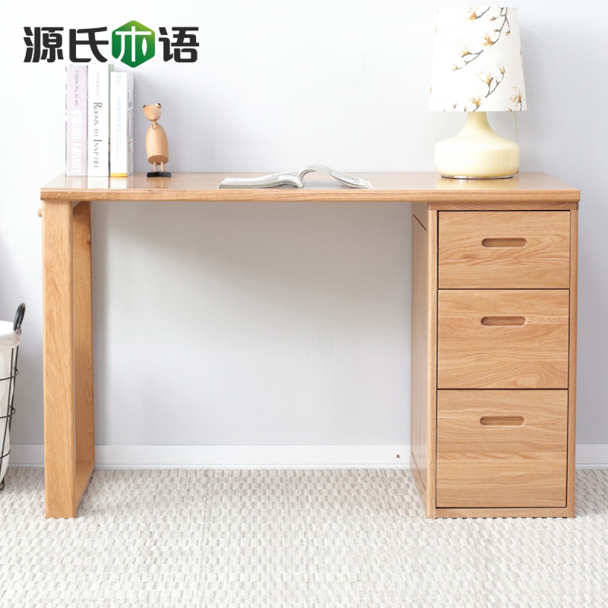 源氏木语全实木书桌北欧简约组合电脑桌橡木双人写字桌书房家具
