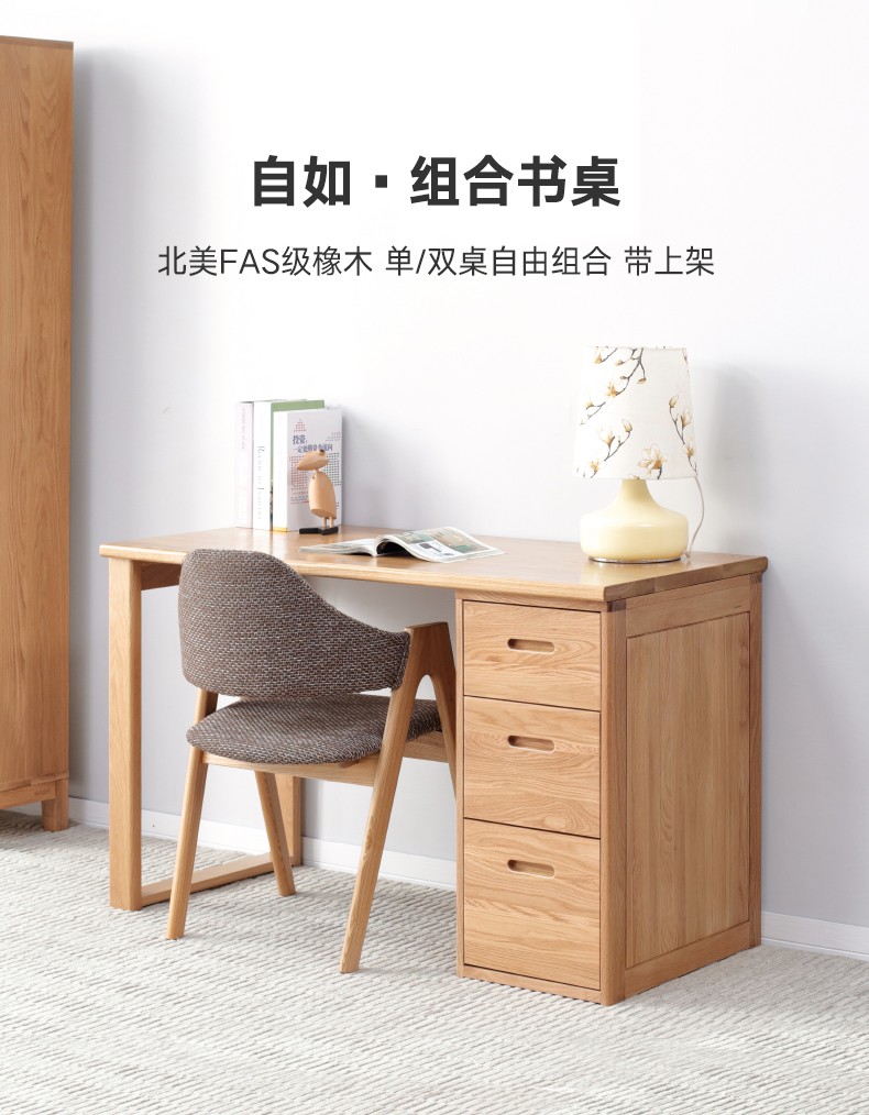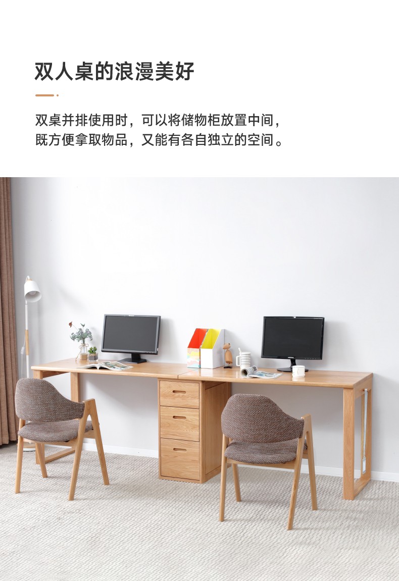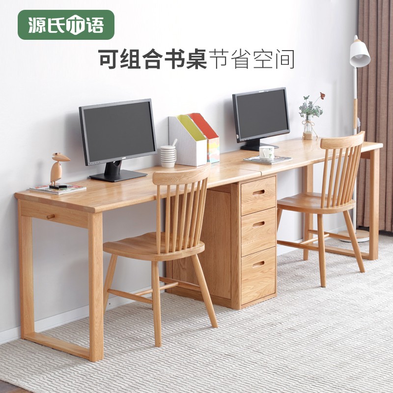 商品名称:源氏木语全实木书桌北欧简约组合电脑桌橡木双人写字桌书房家具