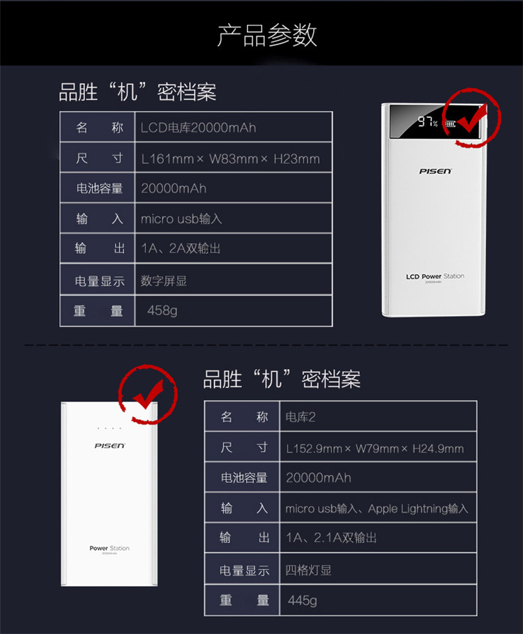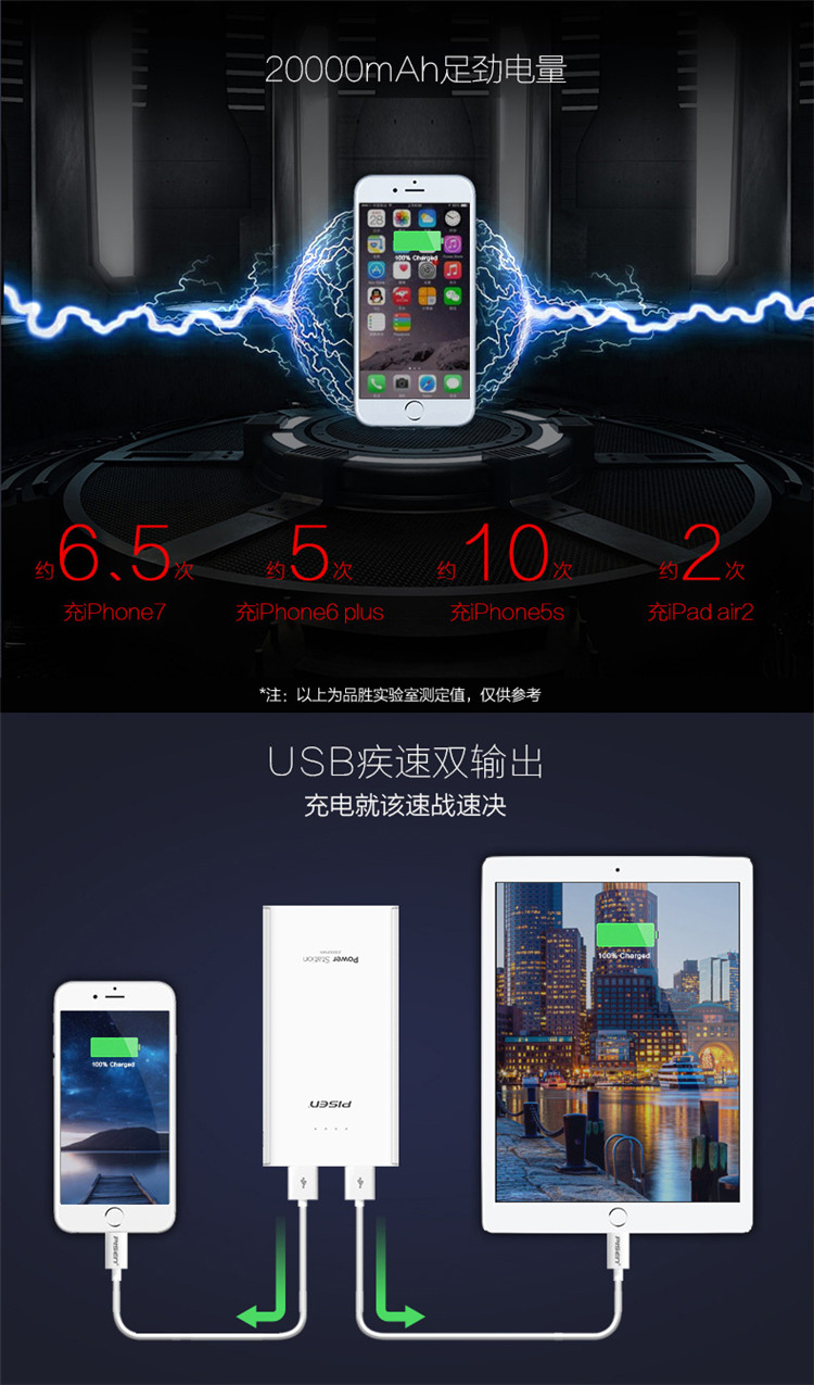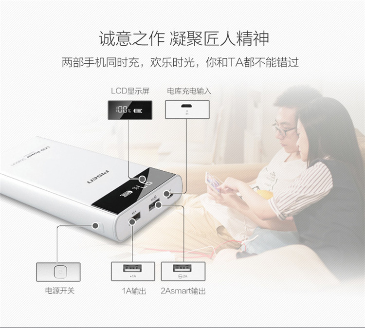 商品名称:热卖品胜lcd电库充电宝2万毫安超大容量移动源数显手机通用0p塑料