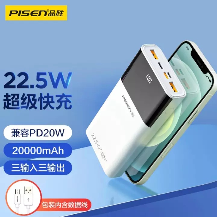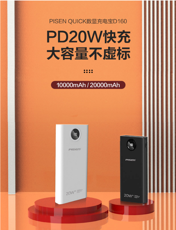 商品名称:品胜LCD电库充电宝20000毫安大容量便携华为苹果12 13通用充电宝