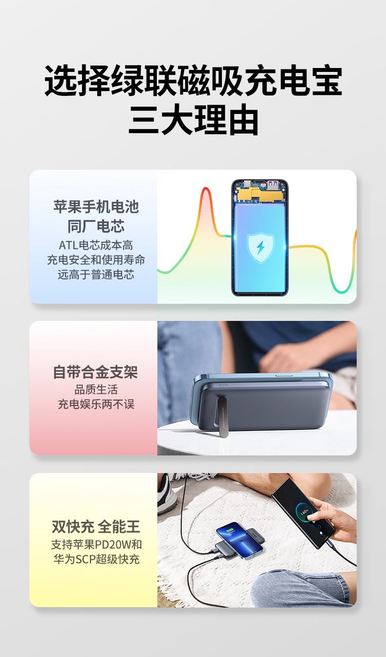 商品名称:UGREEN绿联苹果磁吸无线充电宝PD20W闪充移动电源1万毫安时通用