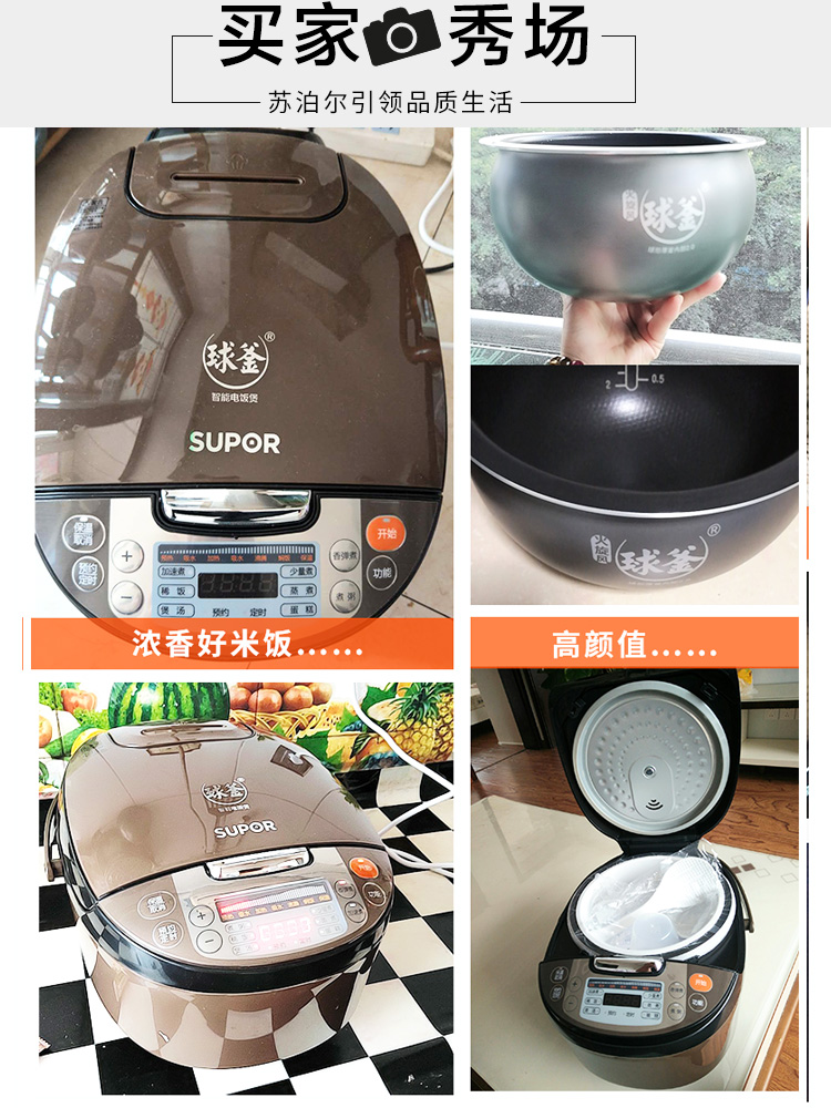 商品名称:苏泊尔真球釜电饭煲4L智能多功能柴火煮饭锅3-6人大容量家用5正品