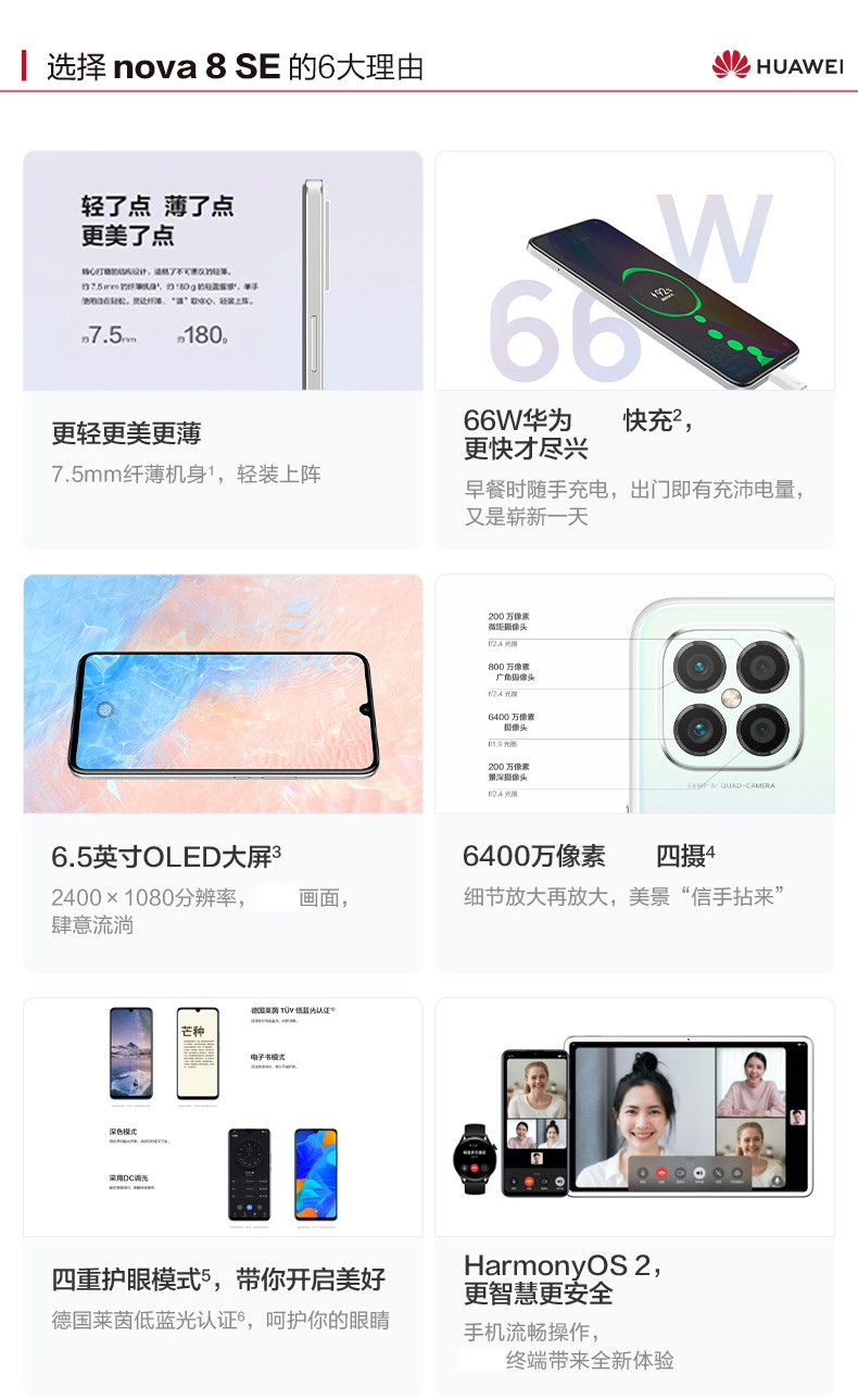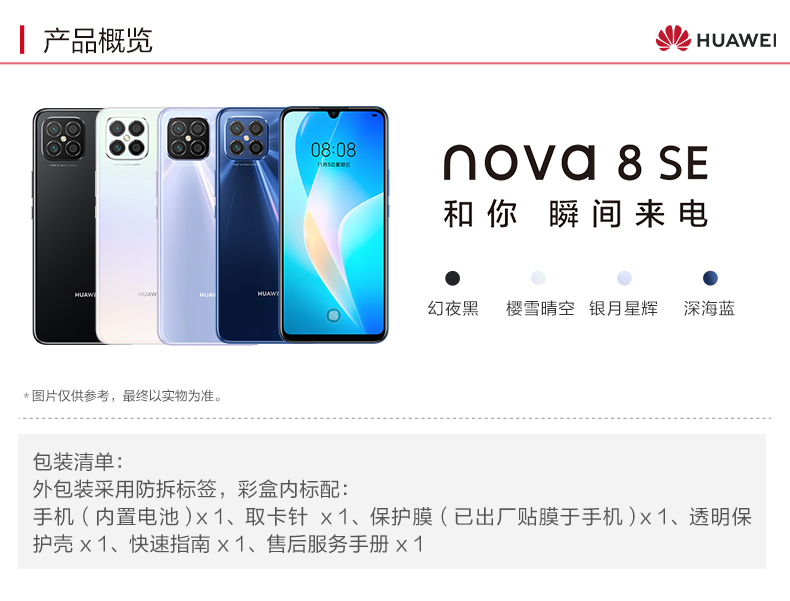 商品名称:Huawei/华为nova 8 SE4G手机全网通正品学生游戏拍照手机nova8se