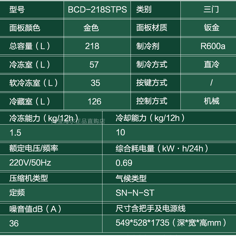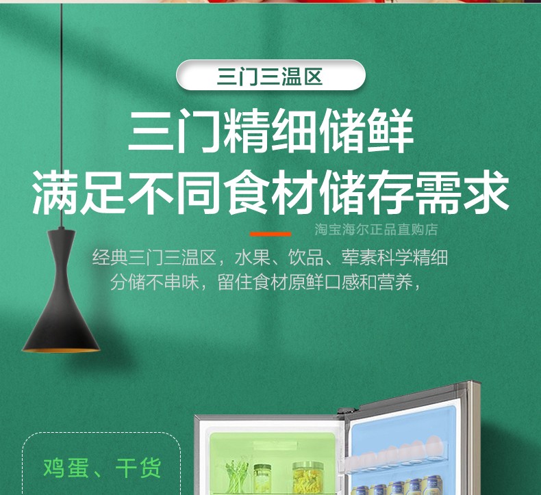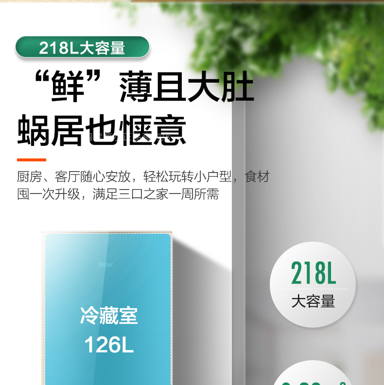 商品名称:海尔电冰箱三门218L/216升风冷无霜软冷冻家用小型节能官方旗舰店