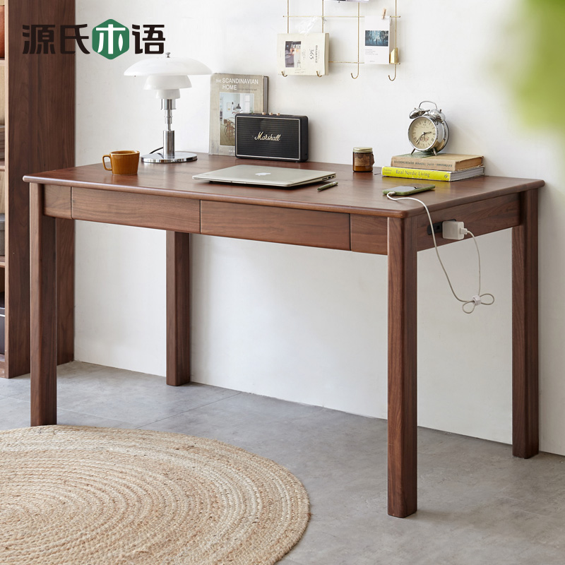 源氏木语实木书桌现代轻奢黑胡桃木电脑桌北欧书房写字台学习桌子