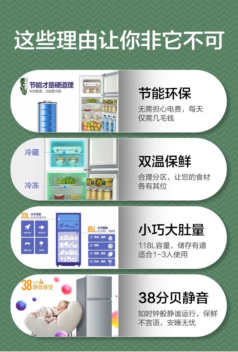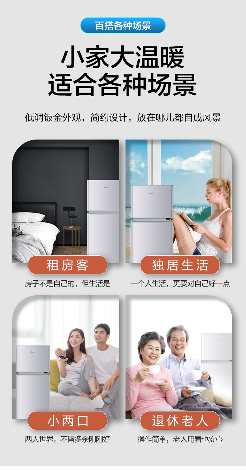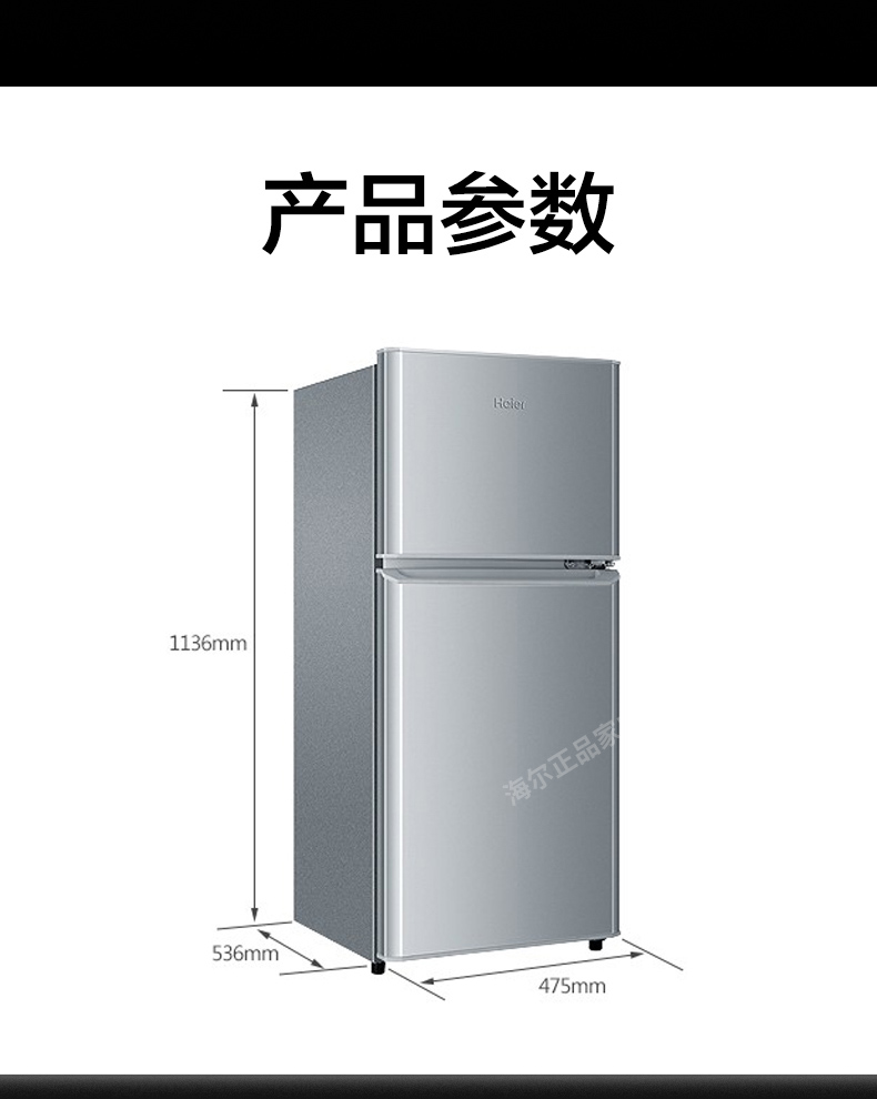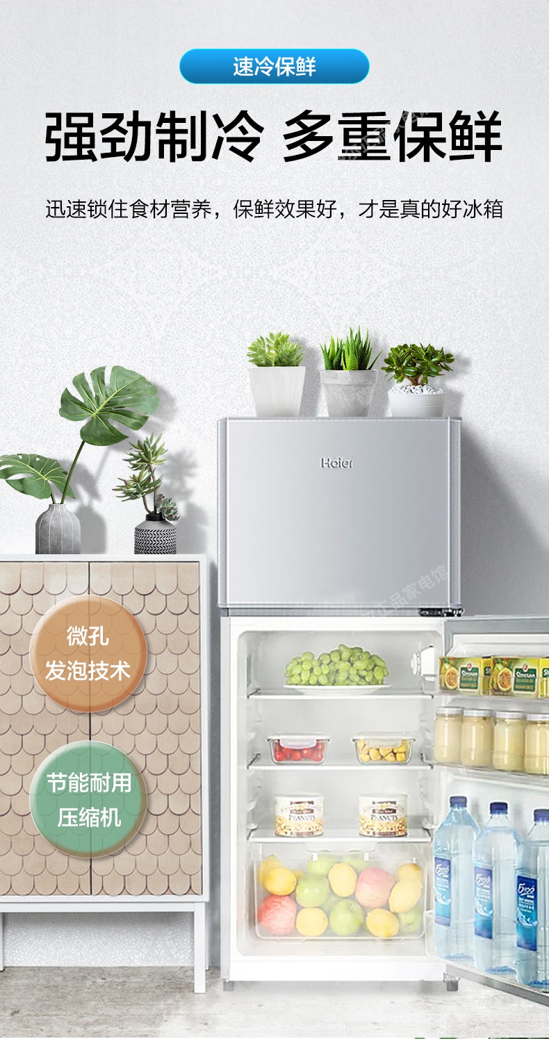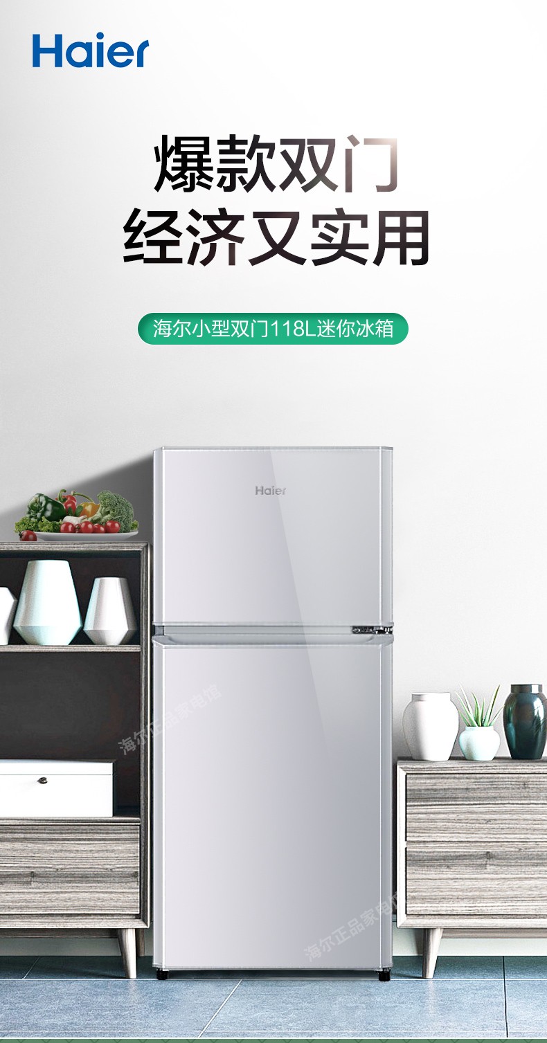 商品名称:Haier/海尔 BCD-118TMPA家用小型电双用两门小冰箱冷藏冷冻118升