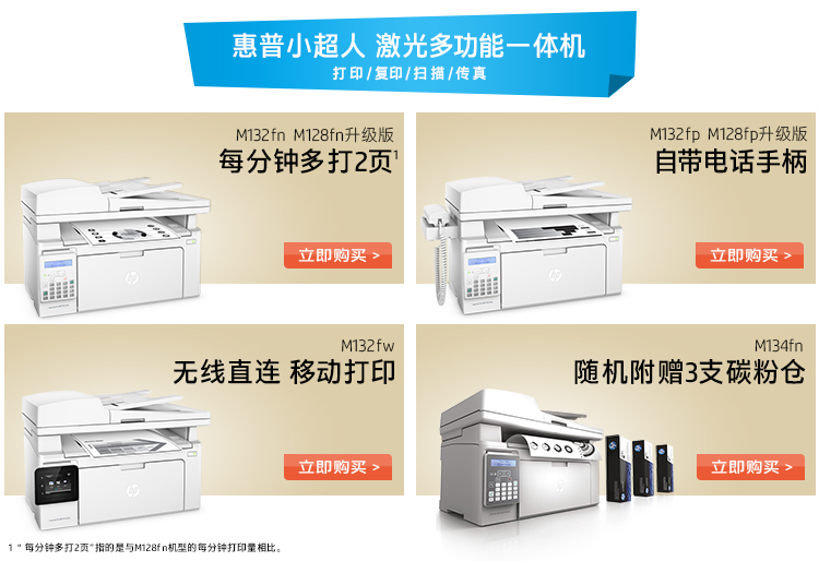 惠普(HP)M128fn黑白激光打印机 多功能一体机 打印复印扫描传真 升级型号132fw