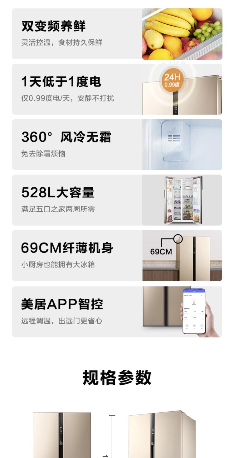 商品名称:Midea/美的 BCD-528WKPZM(E)冰箱变频静音风冷无霜家用对开门冰箱29
