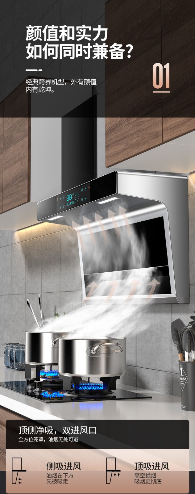好太太抽油烟机家用厨房大吸力顶侧吸油烟机小型油烟机燃气灶套餐
