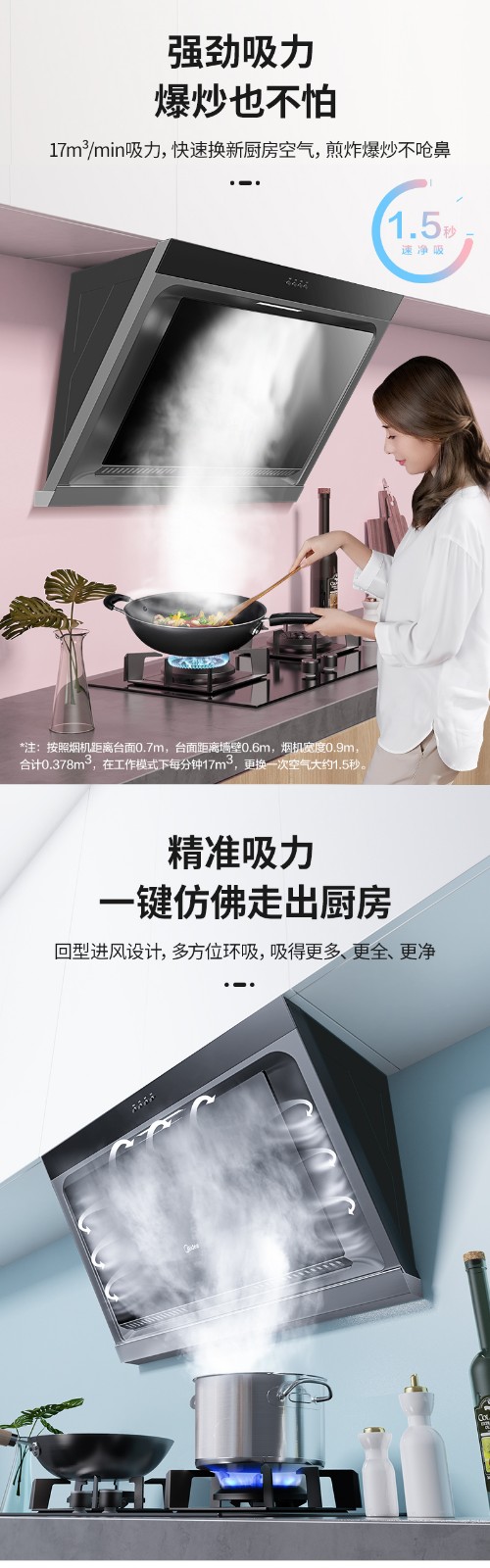 美的J15抽烟机家用厨房侧吸式排烟机大吸力吸抽油烟机旗舰店脱排