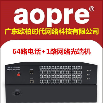 aopre欧柏互联64路电话光端机1路百兆网络64门PCM语音转光纤延长器