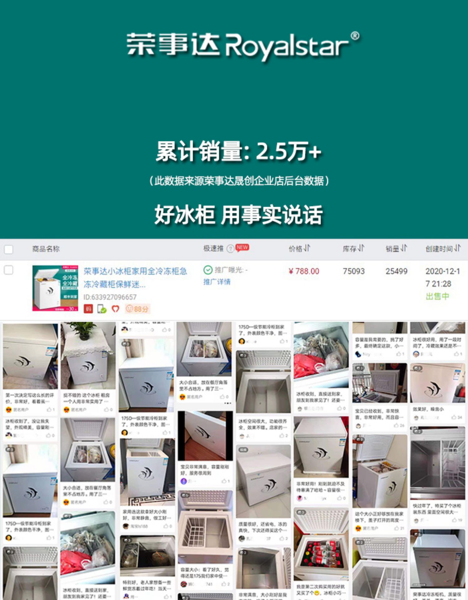 商品名称:荣事达小冰柜家用全冷冻柜小型冷藏保鲜两用大型单迷你小冰箱冷柜