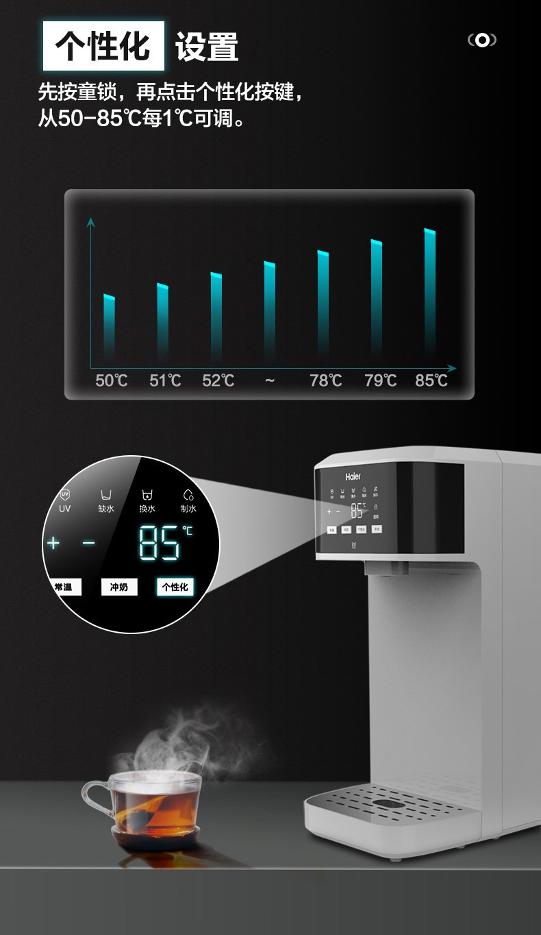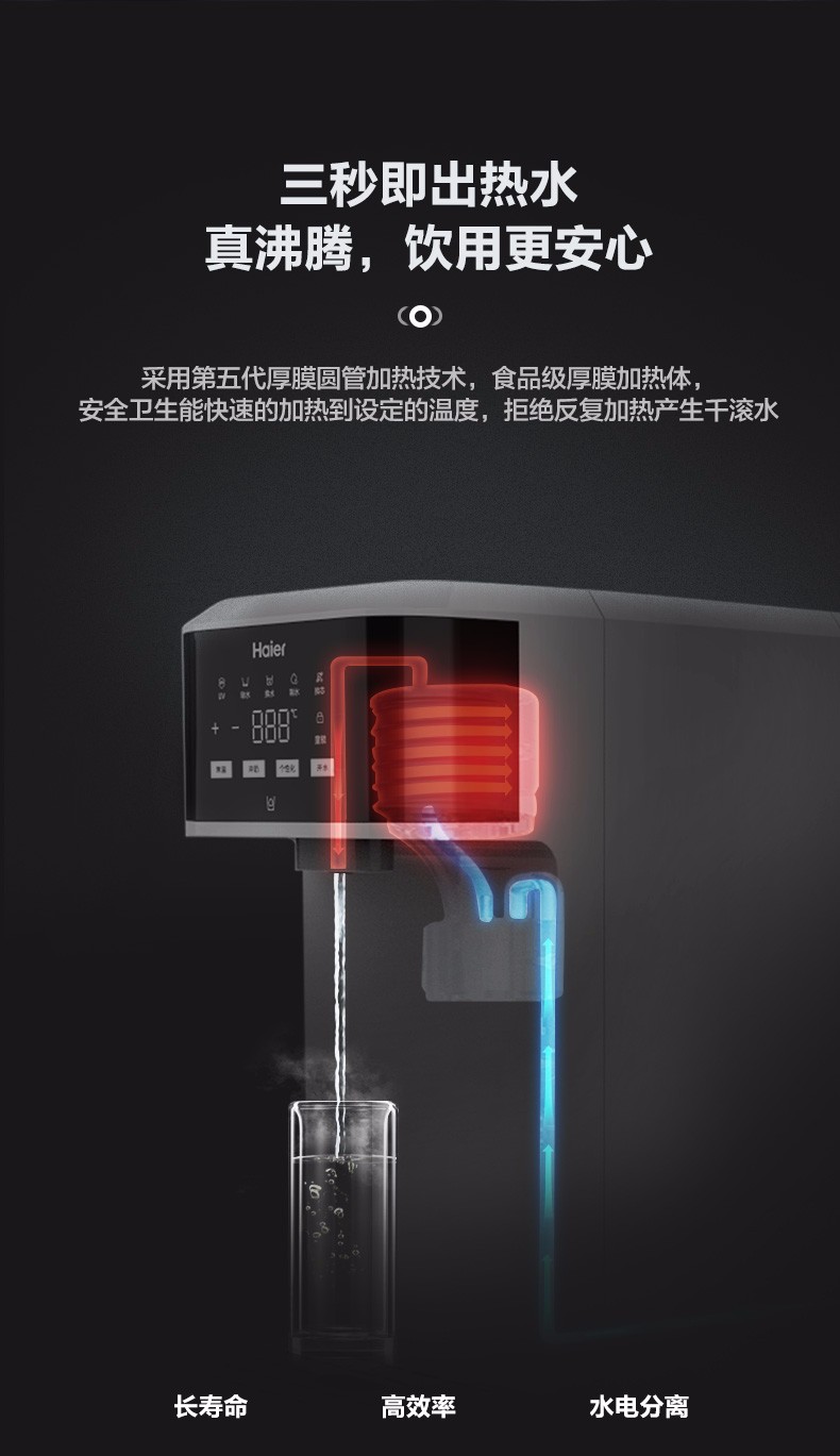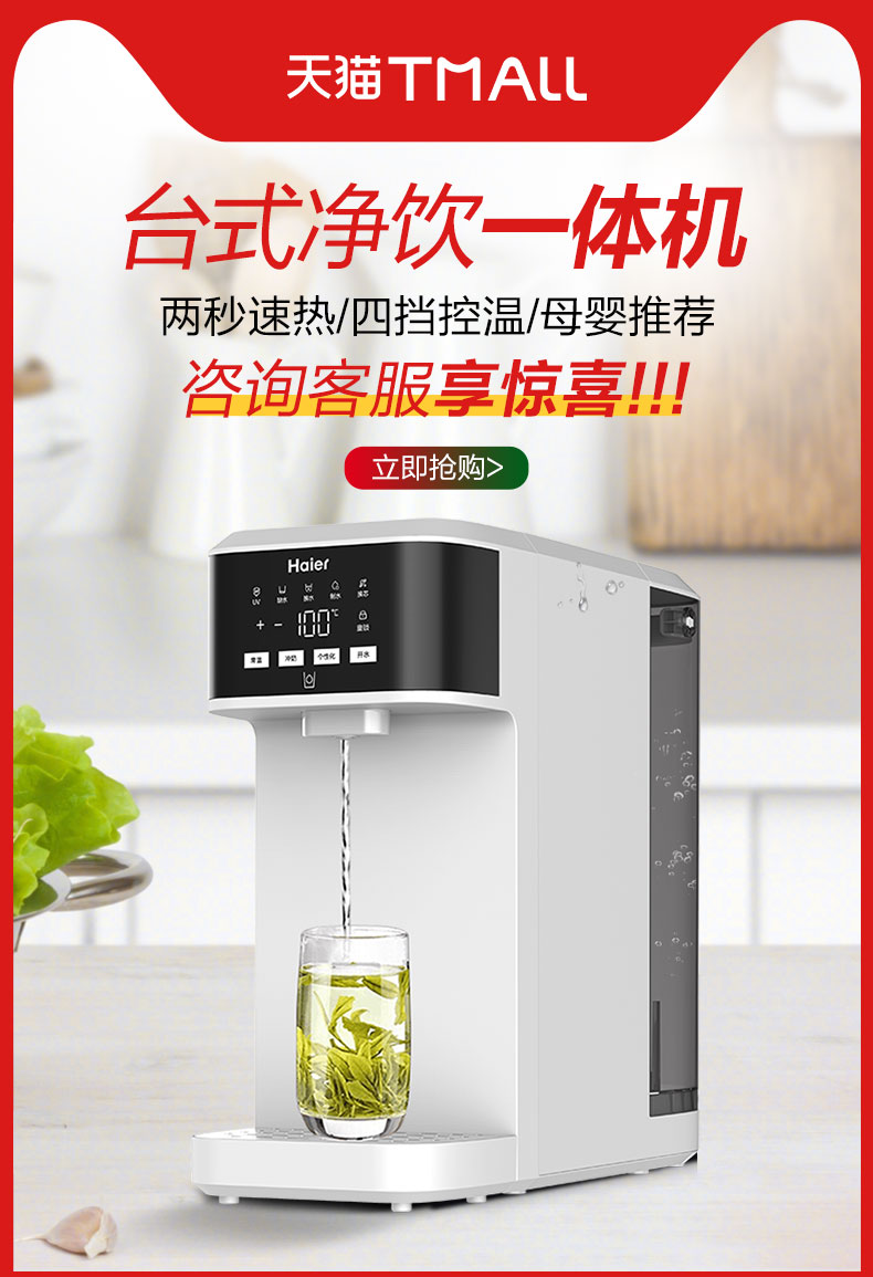 海尔反渗透净水器台式家用自来水过滤直饮加热一体HRO5023-3pro