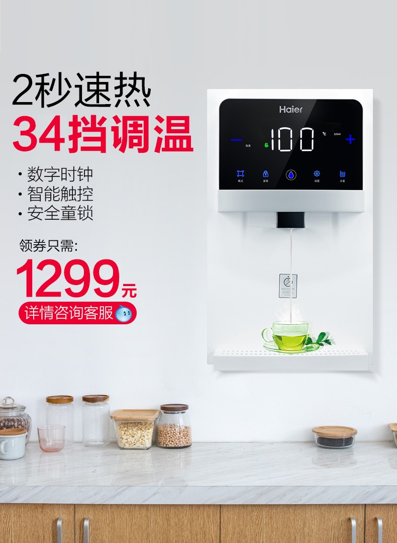 商品名称:海尔饮水机壁挂式家用迷你管线机冷热无胆即热式开水直饮机可调温