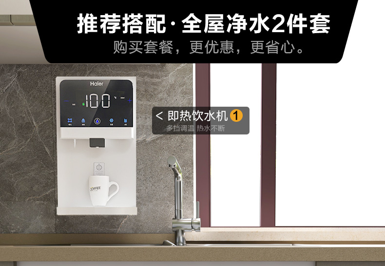 海尔饮水机壁挂式家用迷你管线机冷热无胆即热式开水直饮机可调温