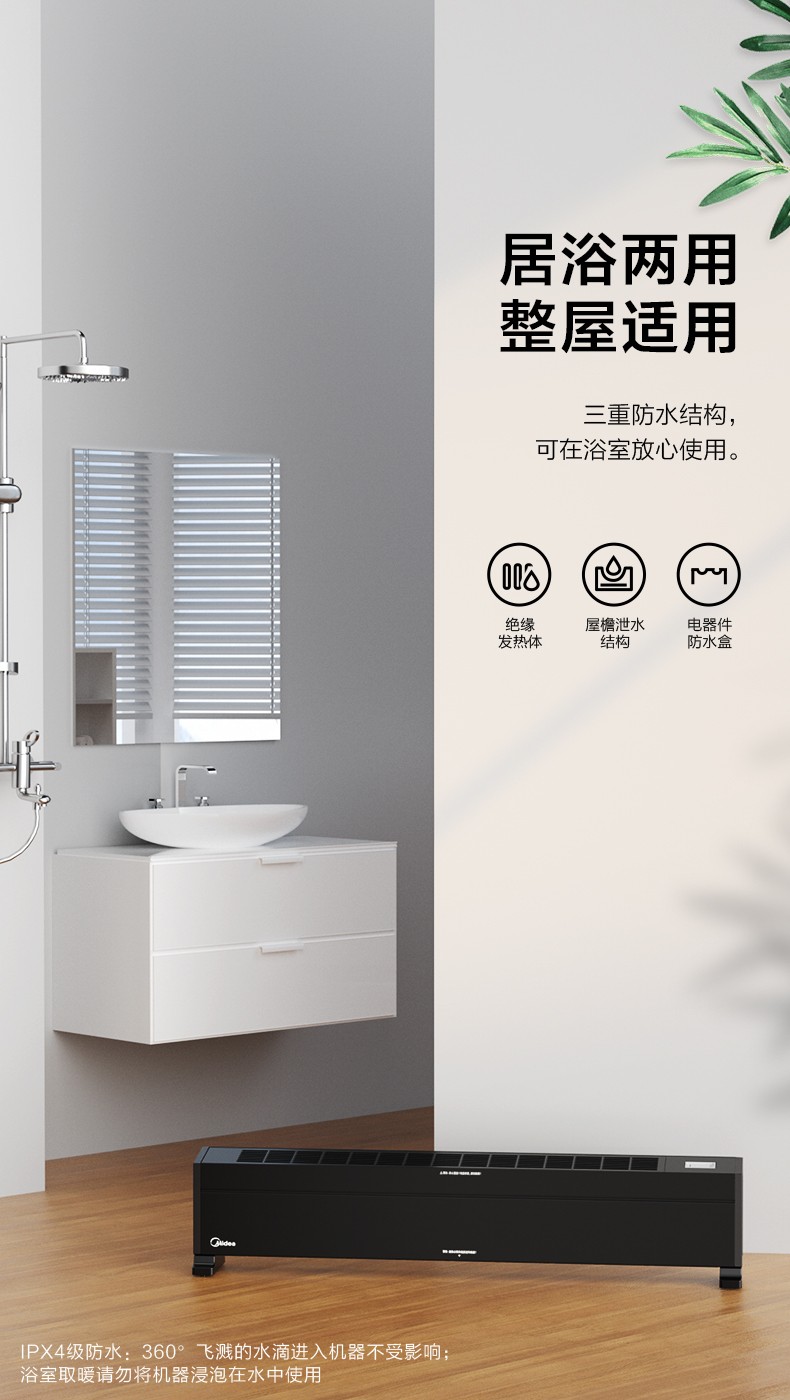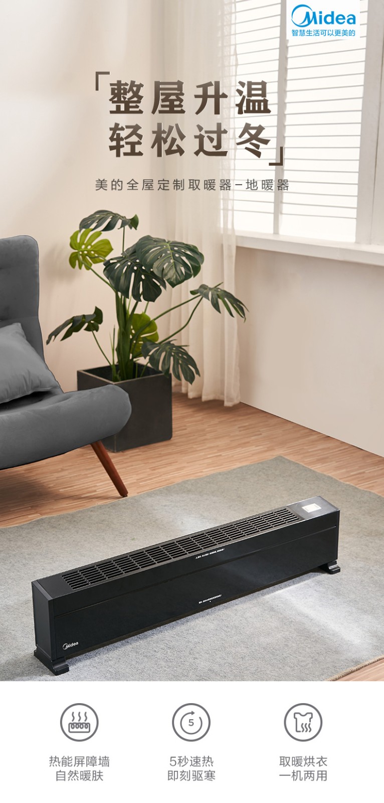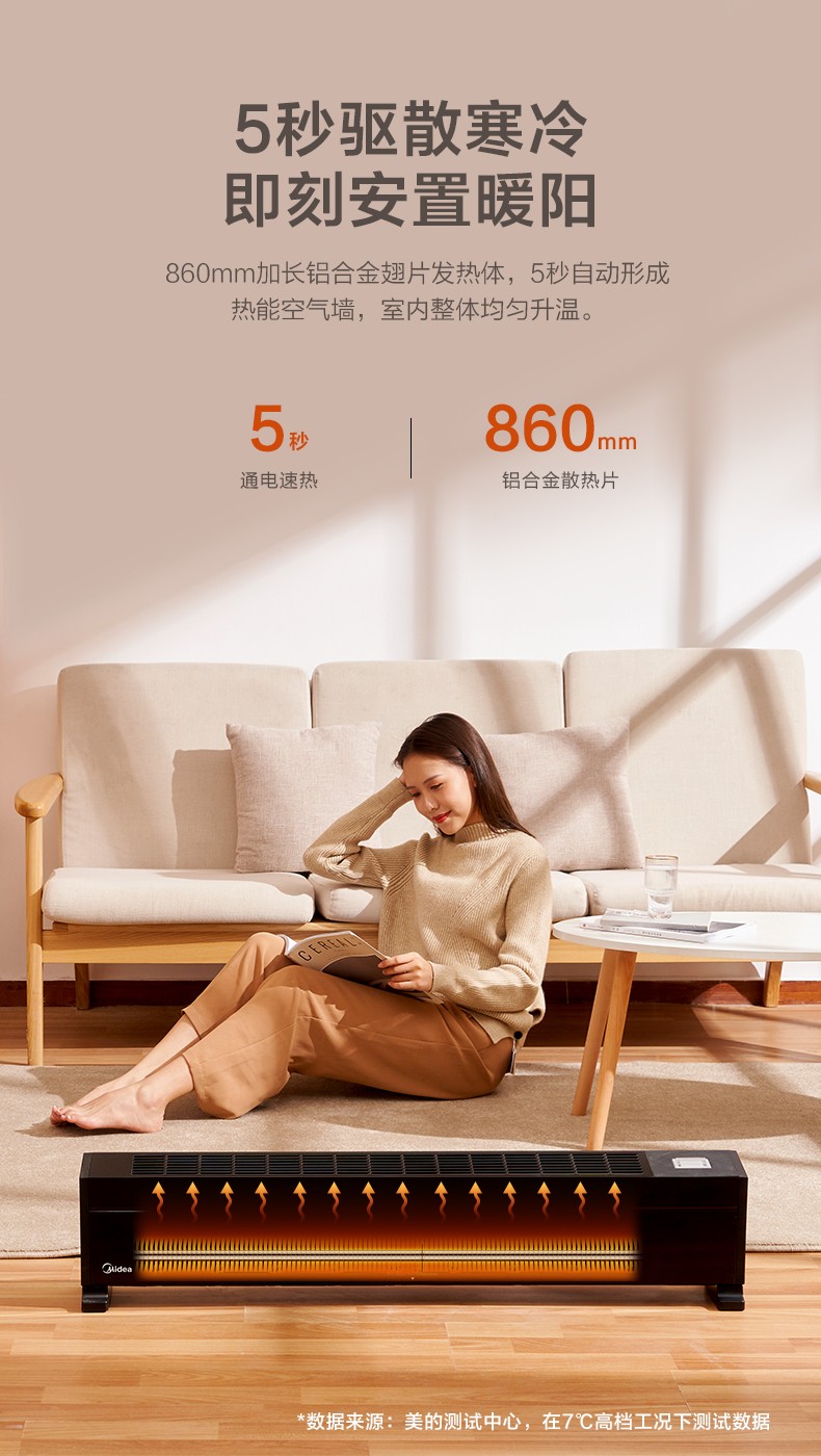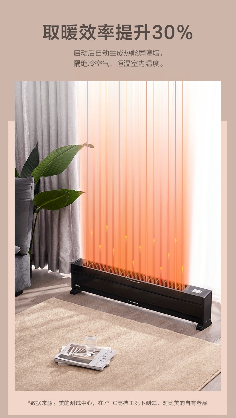 美的电暖气踢脚线取暖器暖风机速热大面积家用节能省电暖神器暖炉