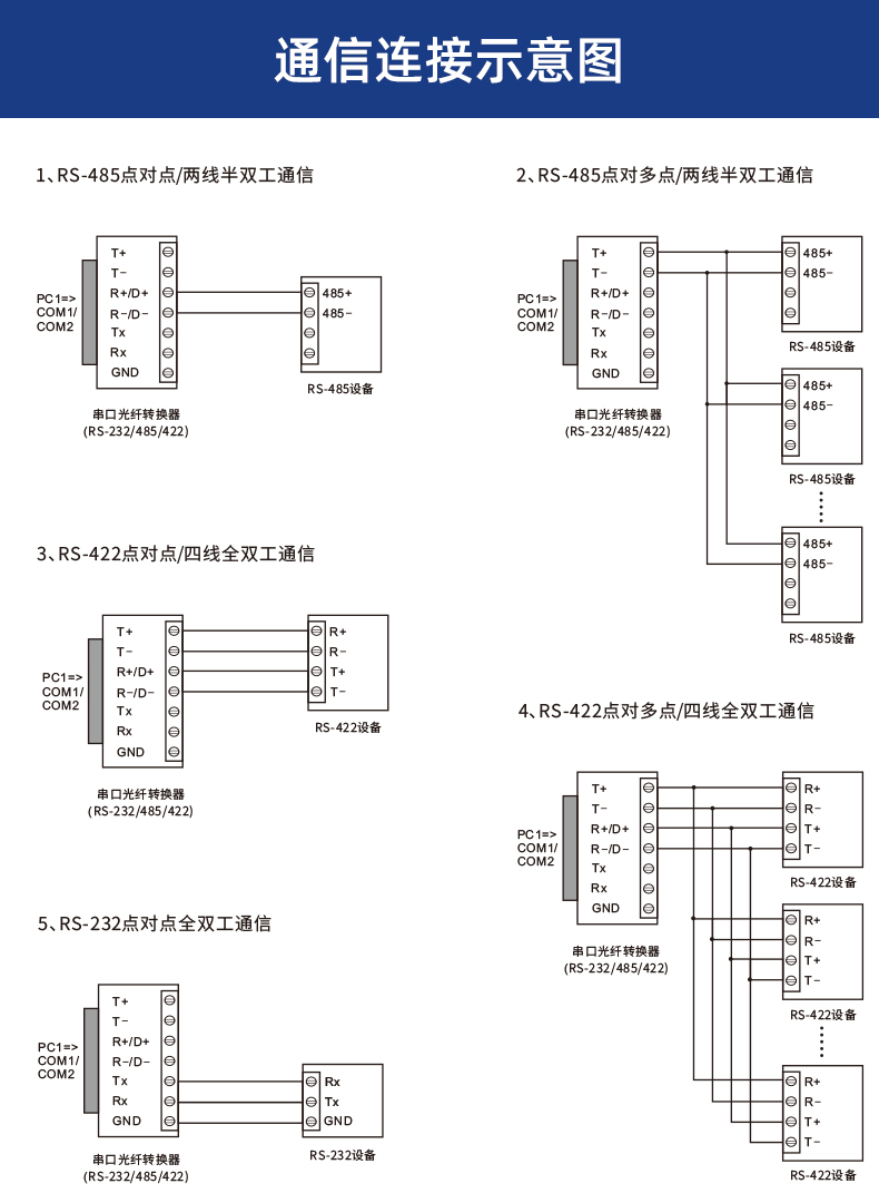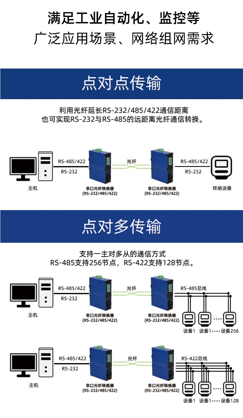 巢客 RS232/422/485串口光纤转换器/光端机收发器单模单纤/双纤SC/ST/FC可选