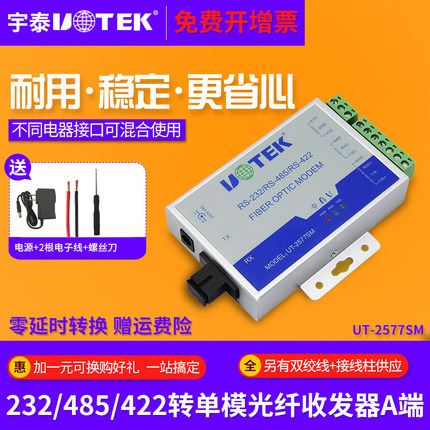 商品名称:宇泰UT-2577SM 单模单纤串口光纤收发器 232/485/422转光纤收发器 ST/FC/SC接口光端机网络接收器发射器