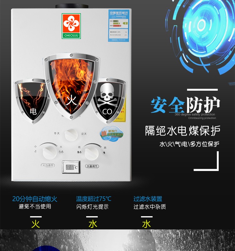 商品名称:樱花家用燃气热水器烟道式强排式燃气热水器家用节能省气6升8升10升 8升铜水箱款(显示屏+豪华配件 +排烟管) 液化煤气20y
