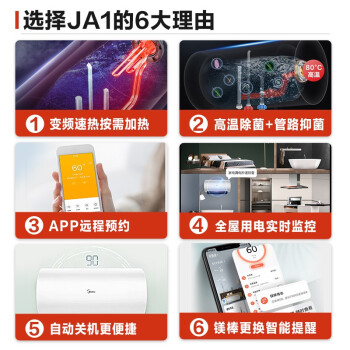 商品名称:美的(Midea)初见套系60升电热水器2100W速热高温健康洗 一级变频 专利无缝内胆智能家电F6021-JA1(HEY)