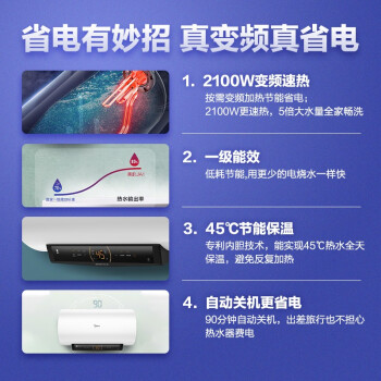 美的(Midea)初见套系60升电热水器2100W速热高温健康洗 一级变频 专利无缝内胆智能家电F6021-JA1(HEY)