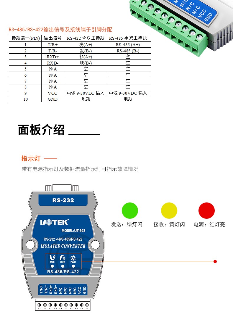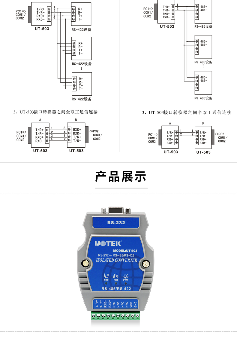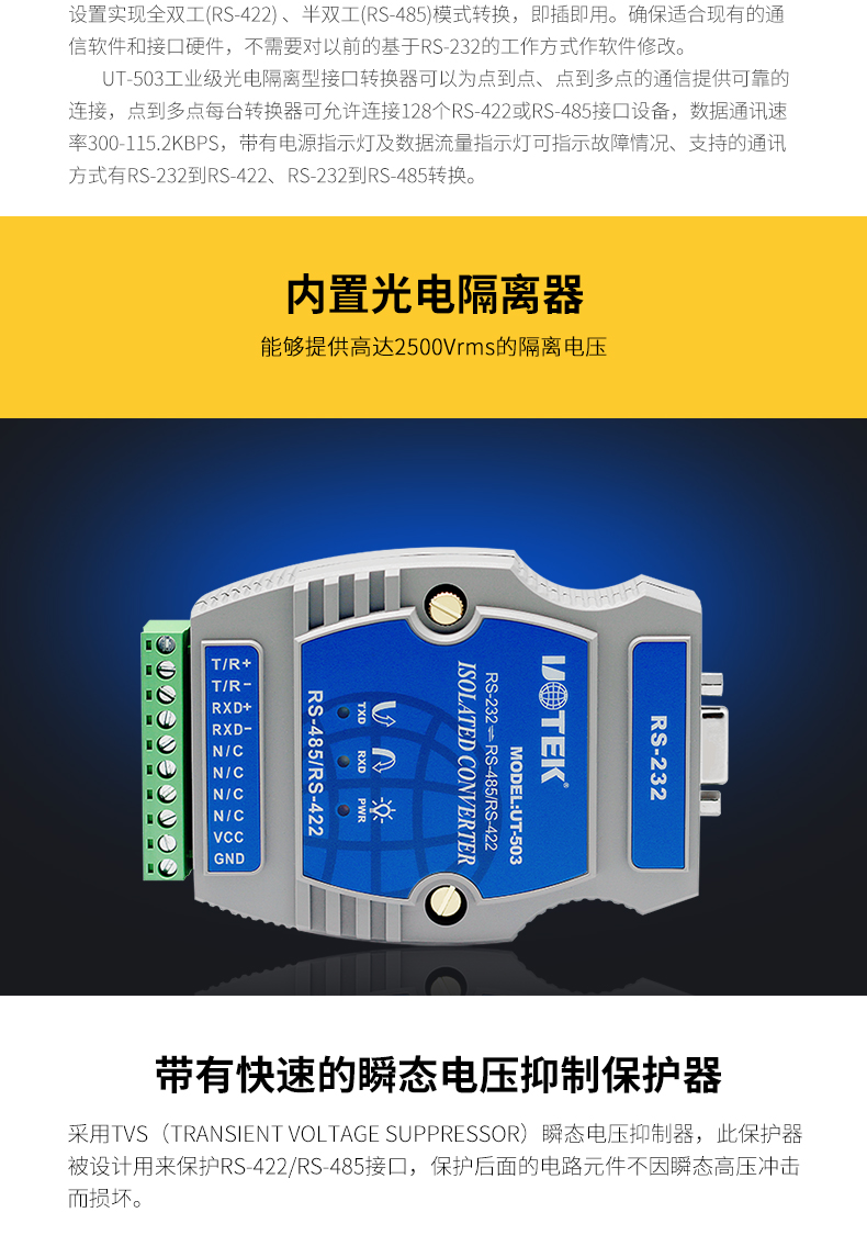 商品名称:宇泰 232串口转485/422转换器工业级光电隔离rs2329针模块UT-503rs232转rs485串口232转rs422转换器通讯模块宇泰 232串口转485/422转换器工业级光电隔离rs2329针模块UT-503rs232转rs4