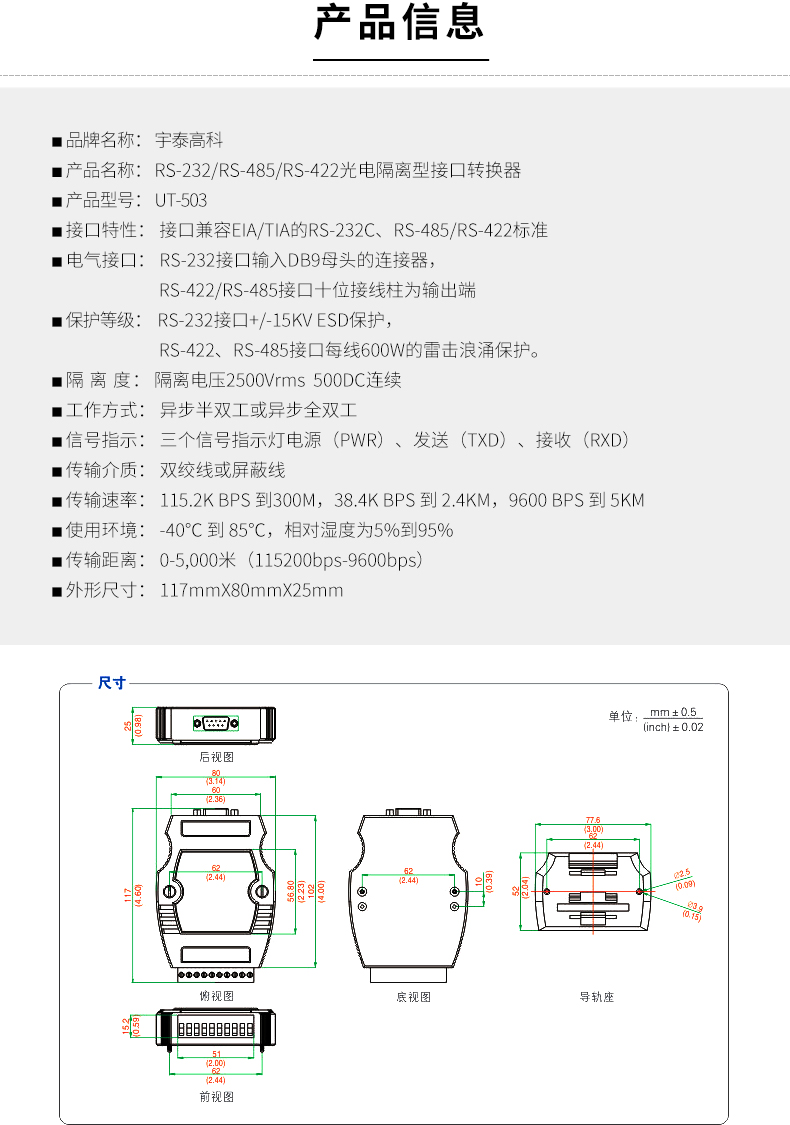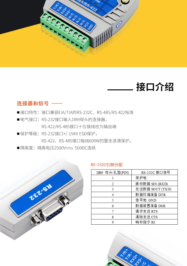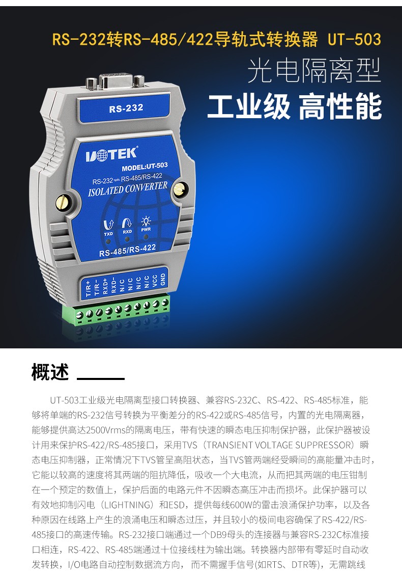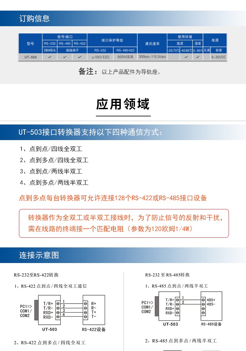 商品名称:宇泰 232串口转485/422转换器工业级光电隔离rs2329针模块UT-503rs232转rs485串口232转rs422转换器通讯模块宇泰 232串口转485/422转换器工业级光电隔离rs2329针模块UT-503rs232转rs4