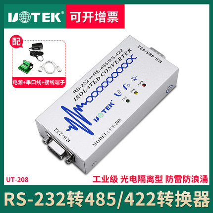商品名称:宇泰UT-208 工业级232转485转换器 232转422 带光电隔离485转换器rs485通讯模块r485r232转换器双向422