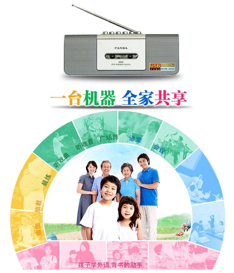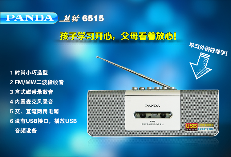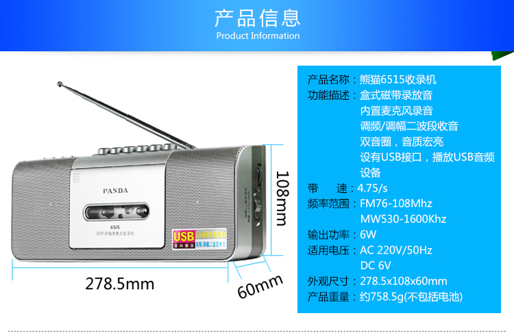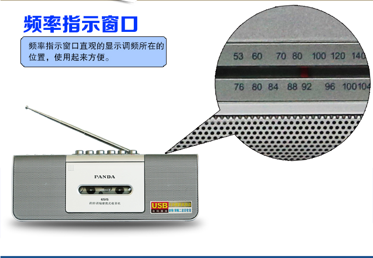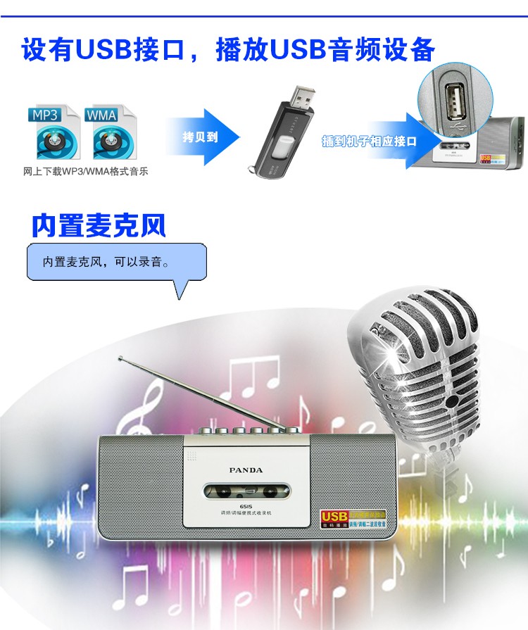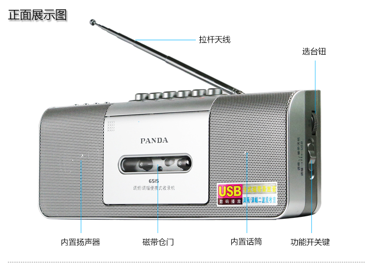 商品名称:PANDA/熊猫 6515录音机收录机磁带播放 usb u盘老人小微型 便携式