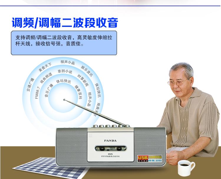PANDA/熊猫 6515录音机收录机磁带播放 usb u盘老人小微型 便携式