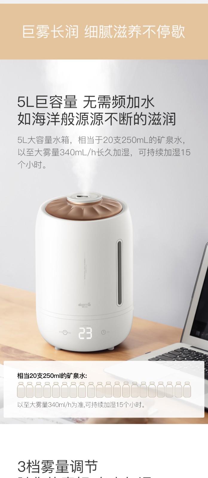 商品名称:德尔玛加湿器家用定时空调卧室内孕妇婴儿空气小型香薰净化大雾量 3档雾量 5L大容量 12H定时 灵敏触控大屏