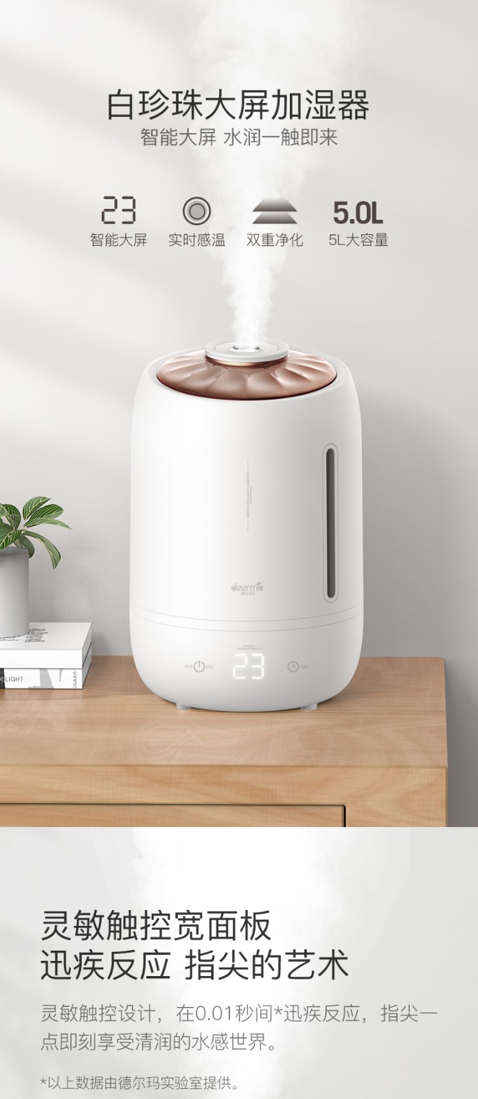德尔玛加湿器家用定时空调卧室内孕妇婴儿空气小型香薰净化大雾量 3档雾量 5L大容量 12H定时 灵敏触控大屏