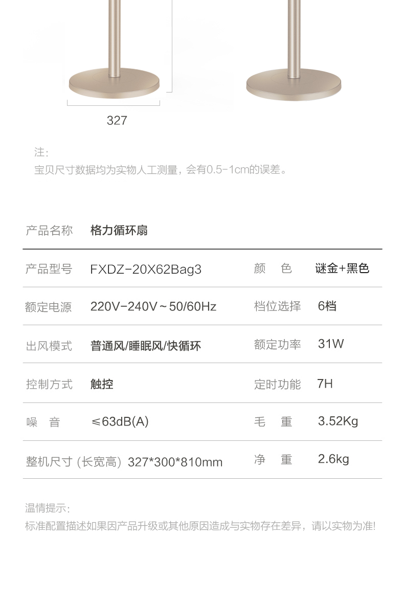 商品名称:格力空气循环扇家用卧室落地直流变频立式静音摇头对流空调电风扇
