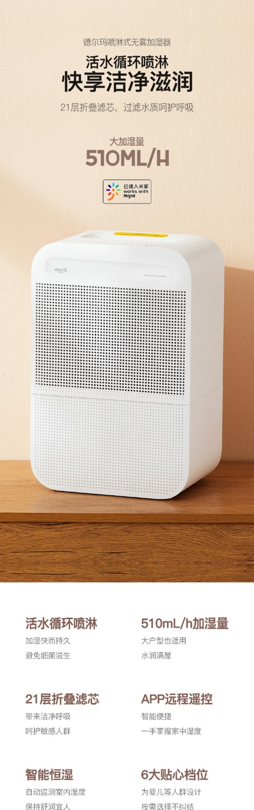 商品名称:德尔玛无雾加湿器家用静音卧室上加水空调孕妇婴儿空气净化香薰机 无雾蒸发净化加湿 不打湿无白粉 全屋滋润