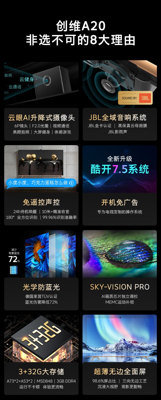 商品名称:创维旗舰店65A20 65英寸社交智慧电视4K超高清全面屏平板液晶 55