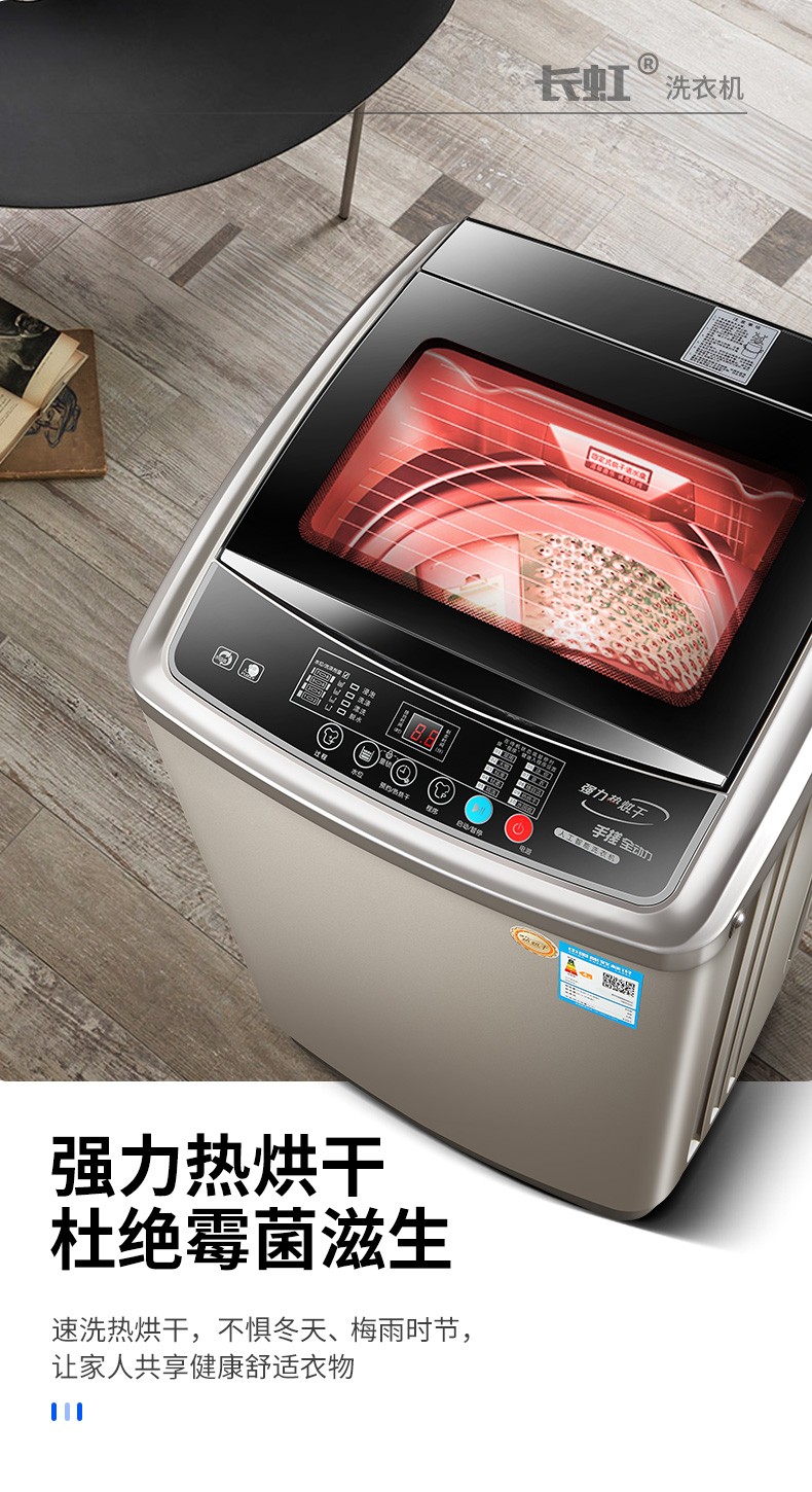长虹7.5KG全自动洗衣机9KG家用波轮大容量热烘干迷你小型滚筒甩干