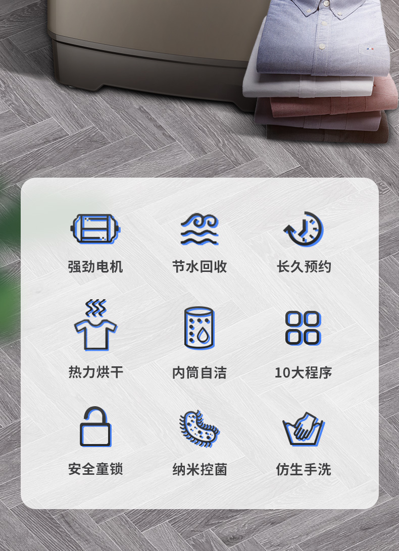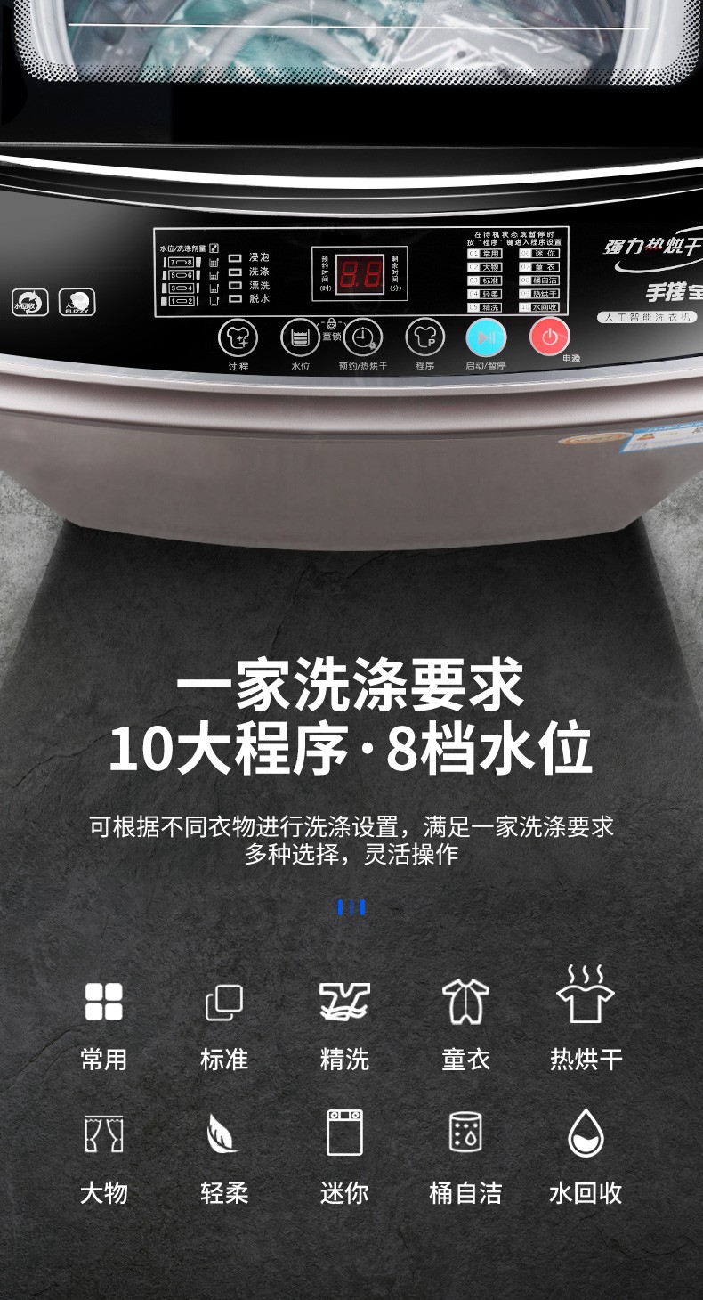 商品名称:长虹7.5KG全自动洗衣机9KG家用波轮大容量热烘干迷你小型滚筒甩干