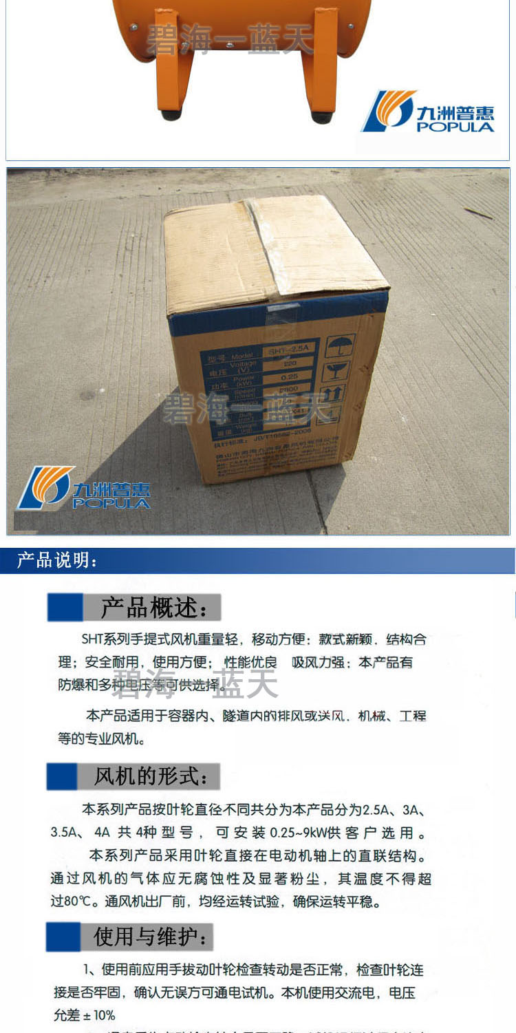 商品名称:九洲普惠SHT手提式抽送风机 船用风机 移动轴流风机 隧道通风机