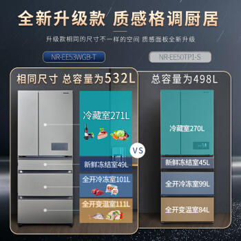 松下(Panasonic) 532升多门变频风冷无霜冰箱大容量顶置压缩机 NR-EE53WGB-T 银色
