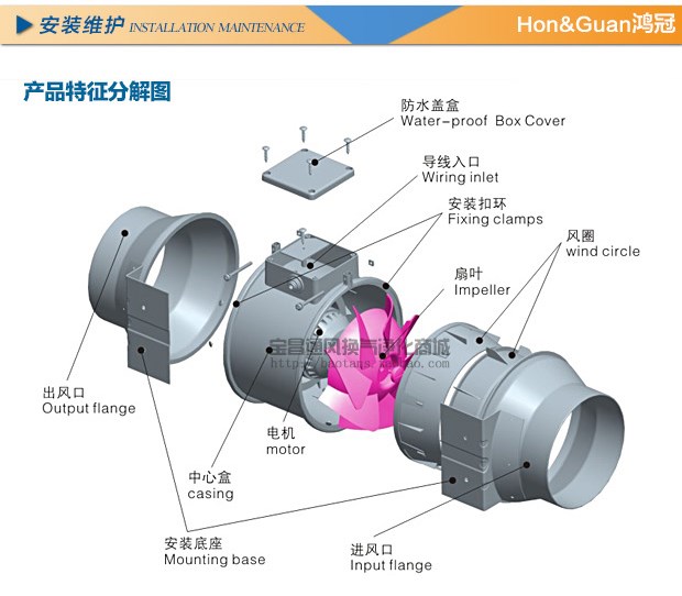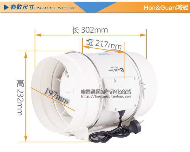 商品名称:a新品鸿冠管道风机圆形餐厅8寸厨房抽风200P卫生间排气通风换气