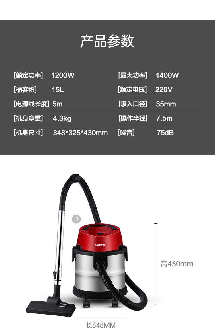 商品名称:苏泊尔吸尘器家用大吸力大功率超强力干湿两用桶式机美缝装修商用