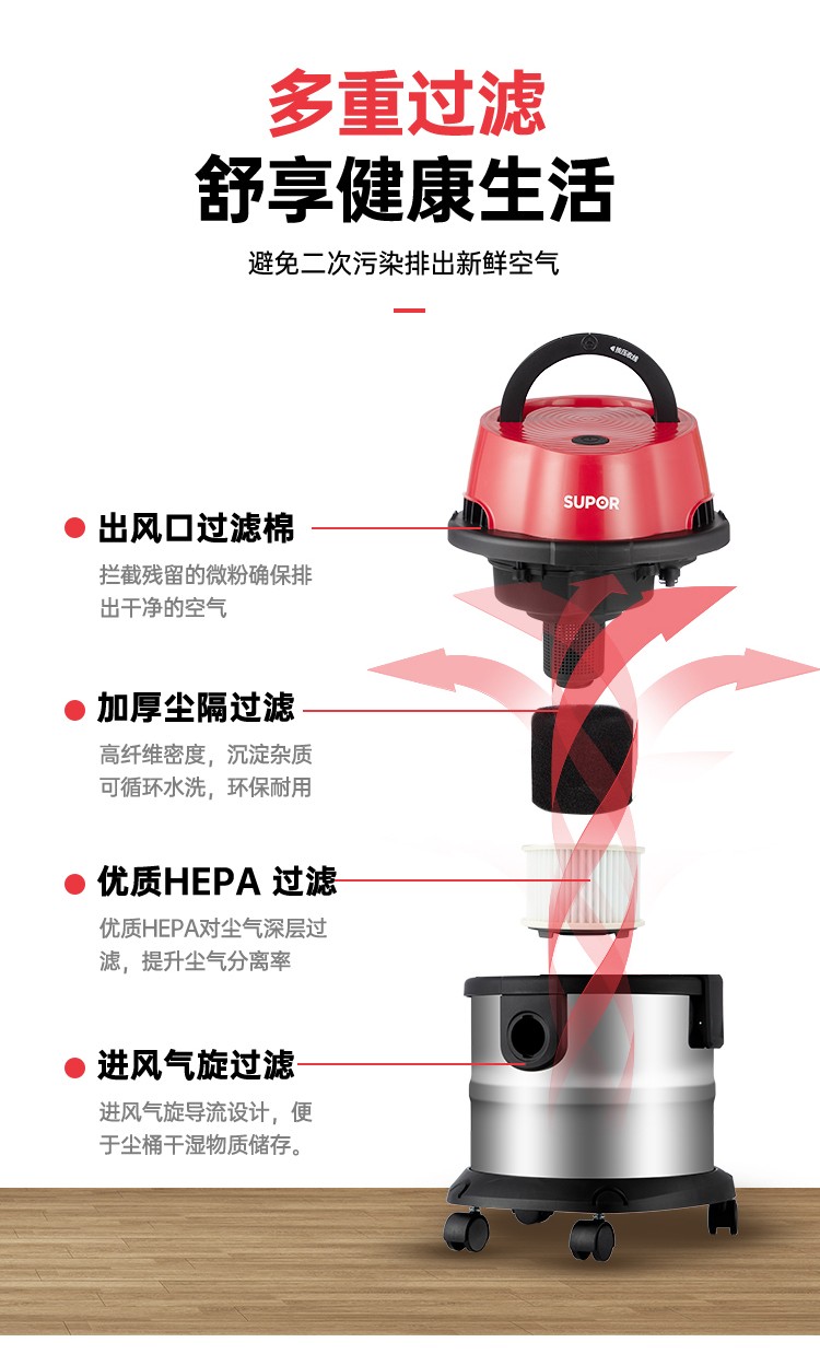 苏泊尔吸尘器家用大吸力大功率超强力干湿两用桶式机美缝装修商用
