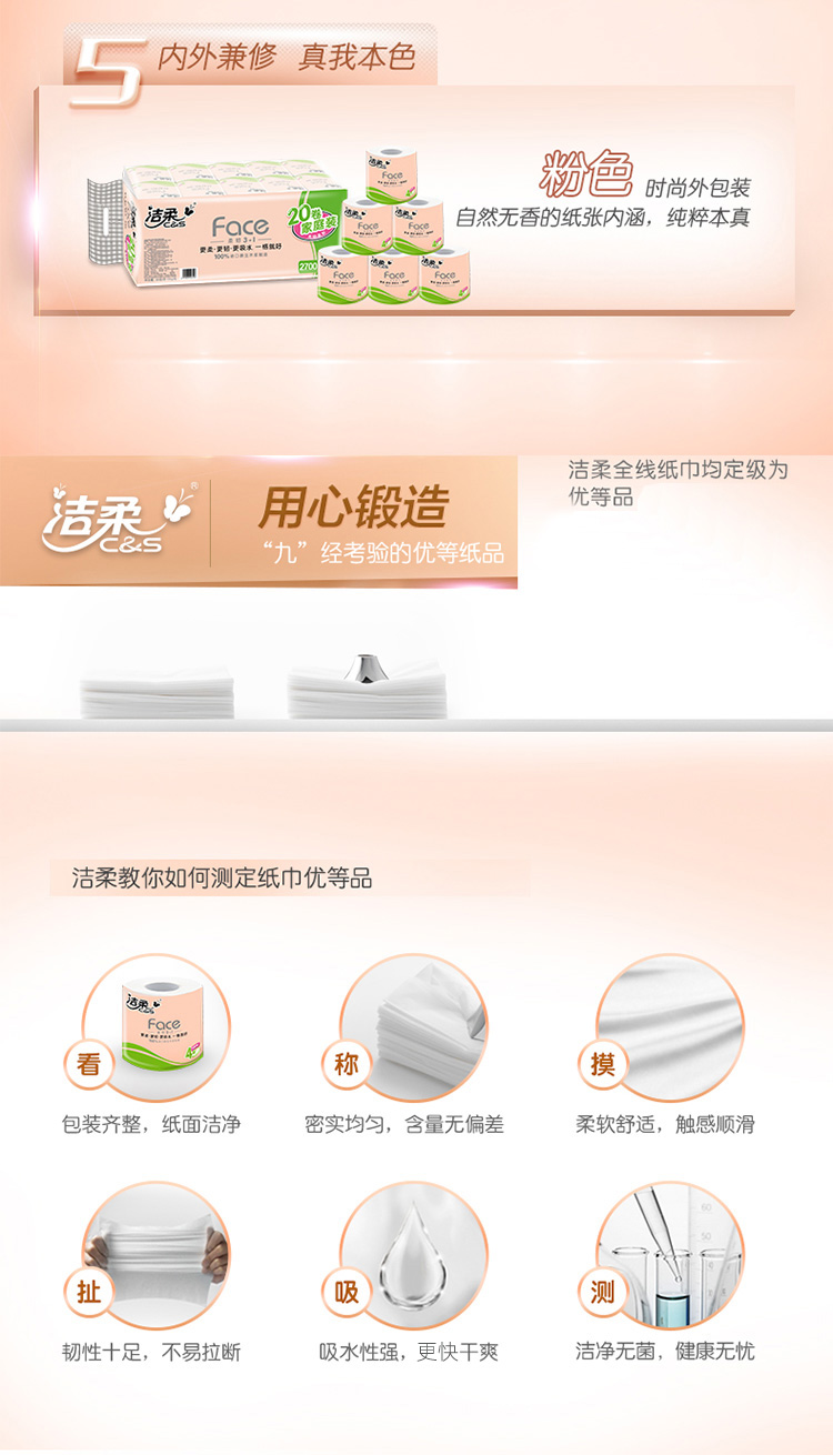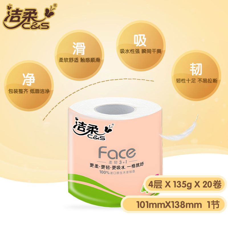 洁柔卷纸卫生纸家用实惠装整箱批纸巾大卷手纸厕纸家庭厕所卫生间20卷