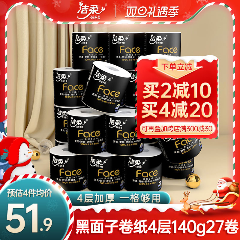 洁柔卷纸卫生纸纸巾 face有芯家用实惠装140g卷筒纸厕纸27卷整箱