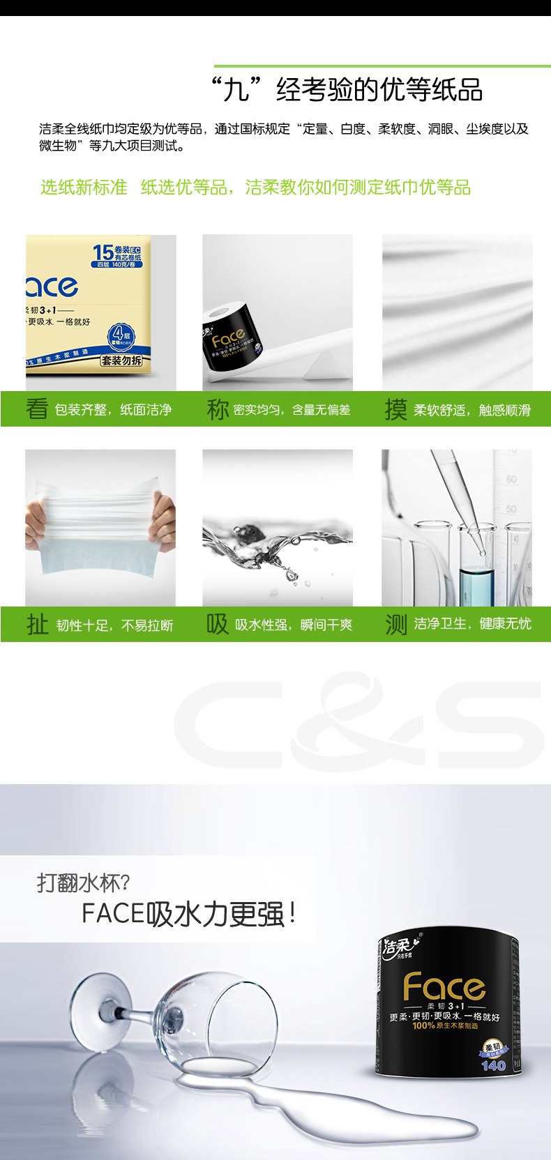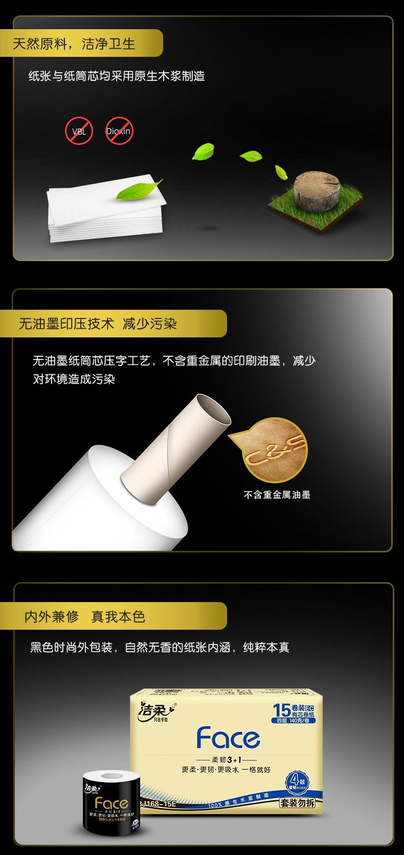 洁柔卷纸卫生纸纸巾家用实惠装140g卷筒纸厕纸整箱15卷